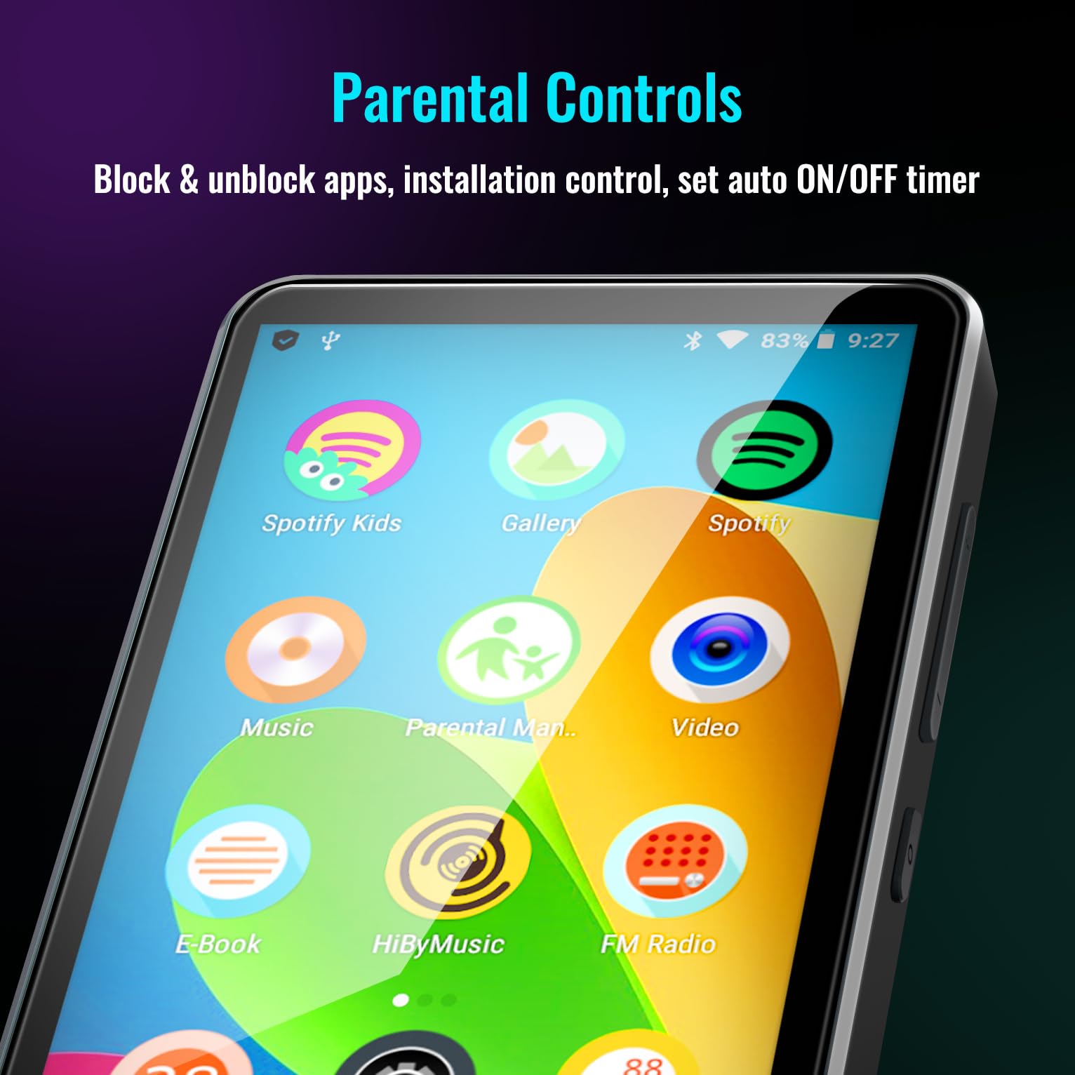 MP3 player with Bluetooth for Spotify Kids, Spotify, Audible, Browser (removable), Amazon Music, 4.0 inch IPS MP4 music player Up to 256GB.