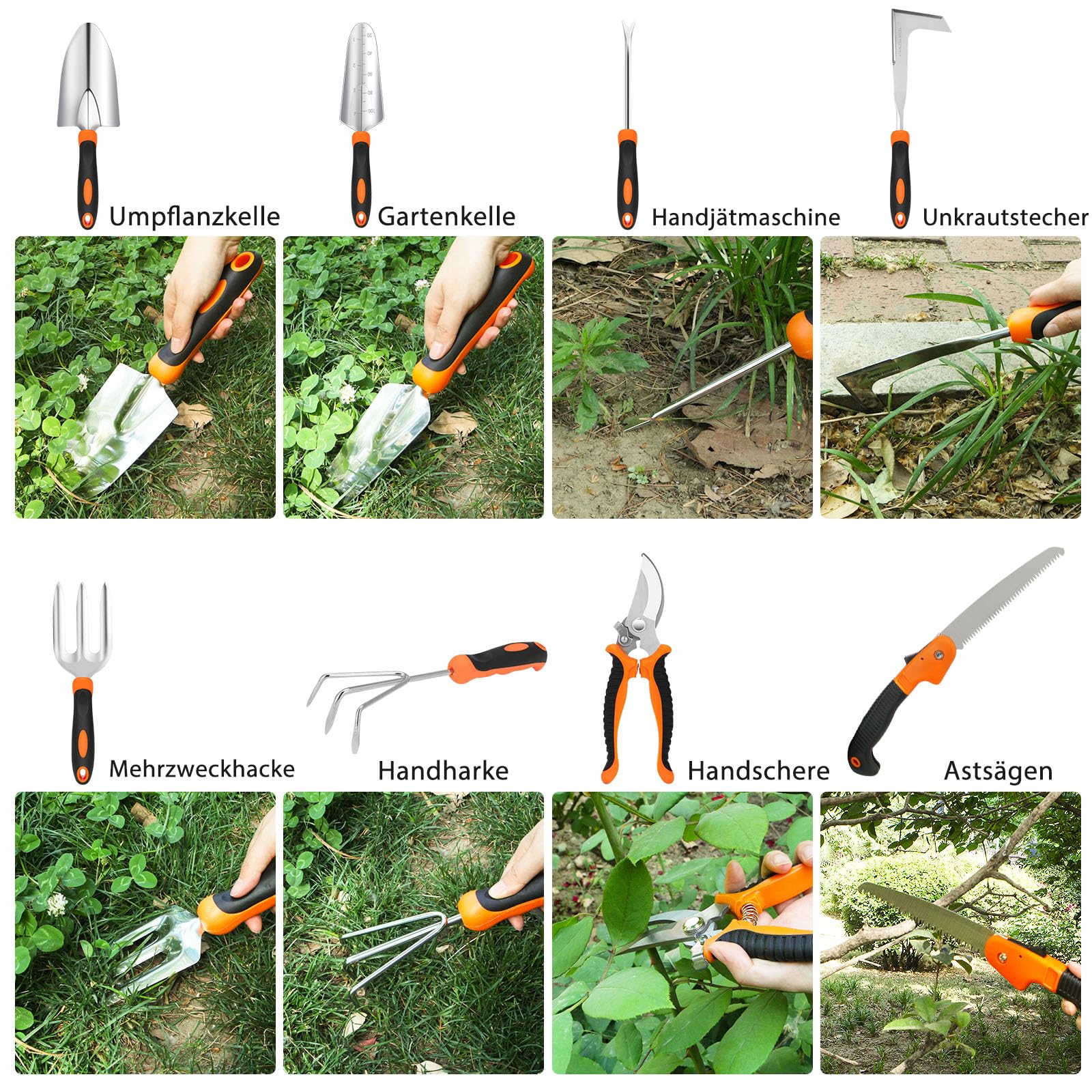 Easy to Use and Store: This garden tools set includes an additional garden bag where you can store and transport all your tools. Each tool has a hanging hole for easy storage or hanging for quick and easy access"
