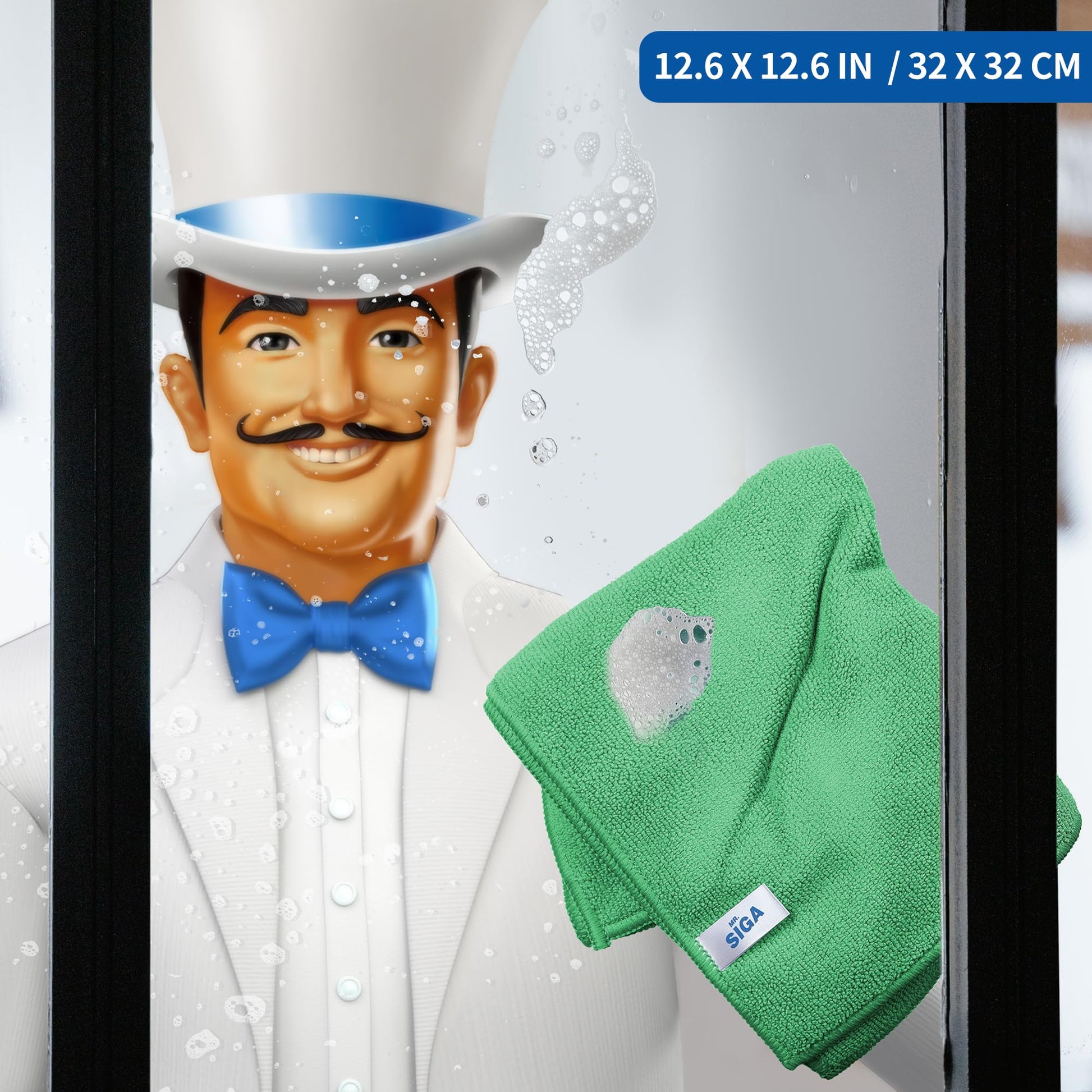 MR.SIGA Microfiber Cleaning Cloth, All-Purpose Microfiber Towels, Streak-Free Cleaning Cloths, 12 Pieces, Green, Size 32 x 32 cm
