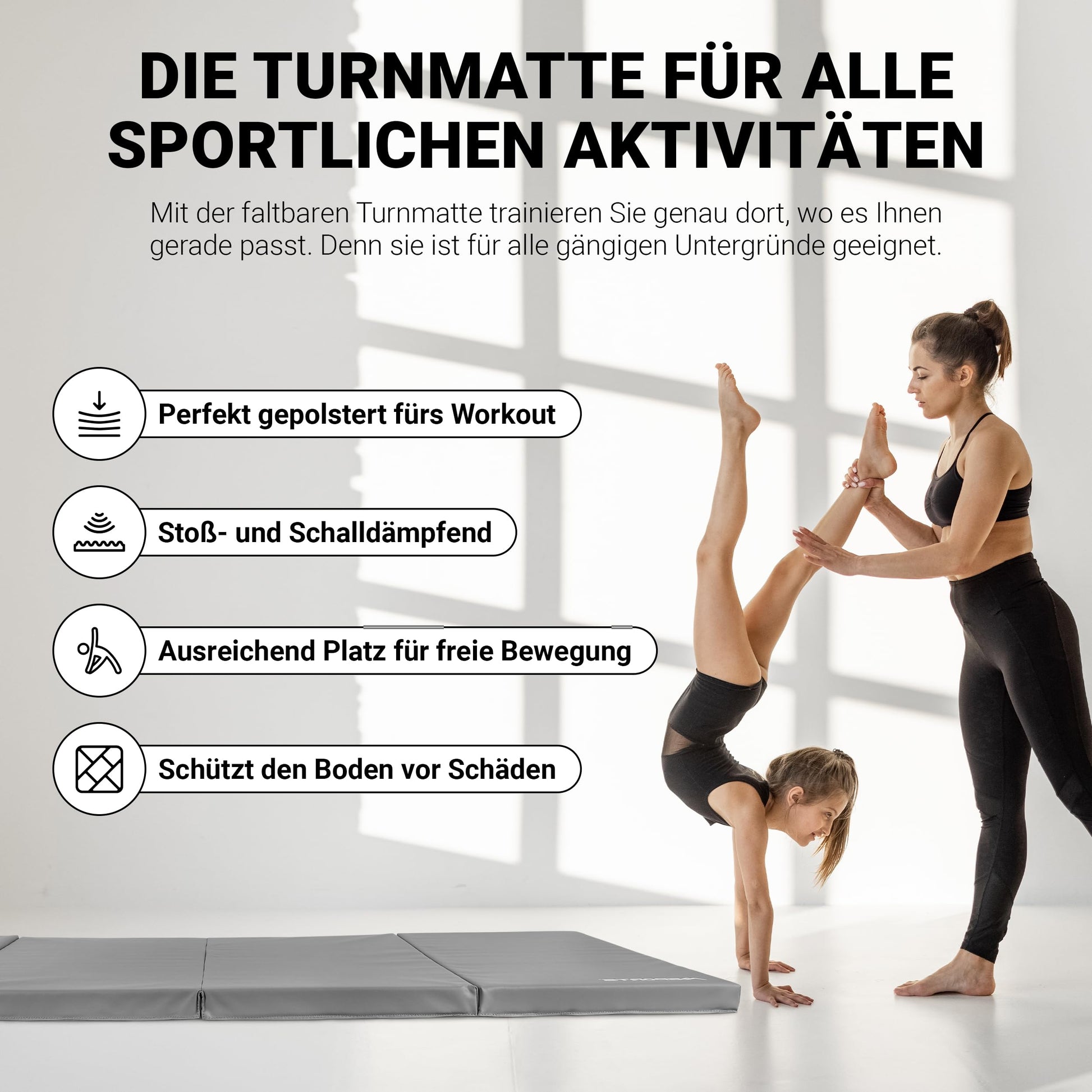 MSPORTS Gymnastics Mat Premium foldable floor mat 190 x 80 x 5 cm Sports mat for home children adults (Gray, 190 x 80 x 5 cm)