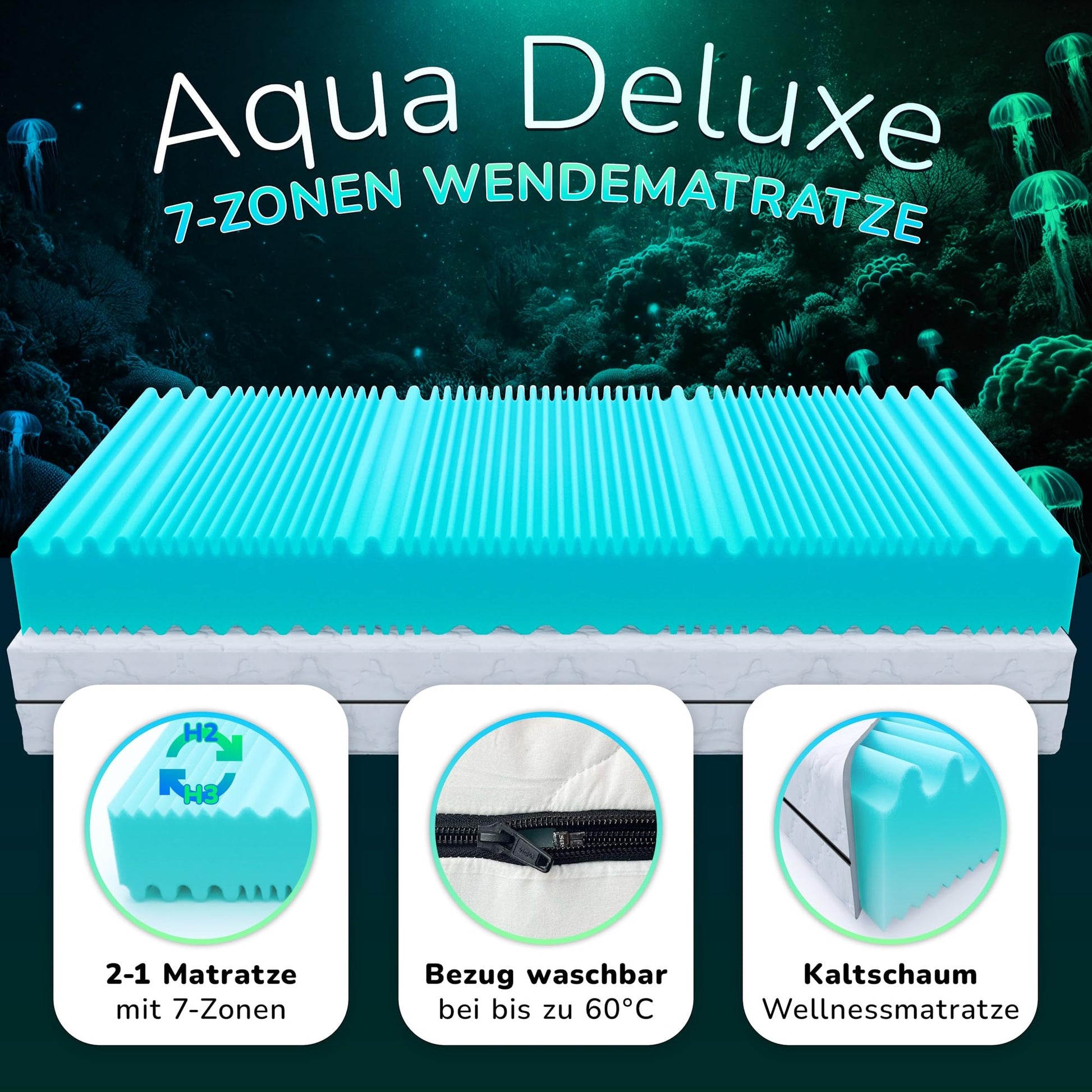 MSS e.K. Aqua Deluxe - 7 Zone Wellness Cold Foam Mattress - 70 x 180 x 16 cm (core height 14 cm) - Firmness Level H4 & H5 - Reversible Mattress Cold Foam Oeko-TEX