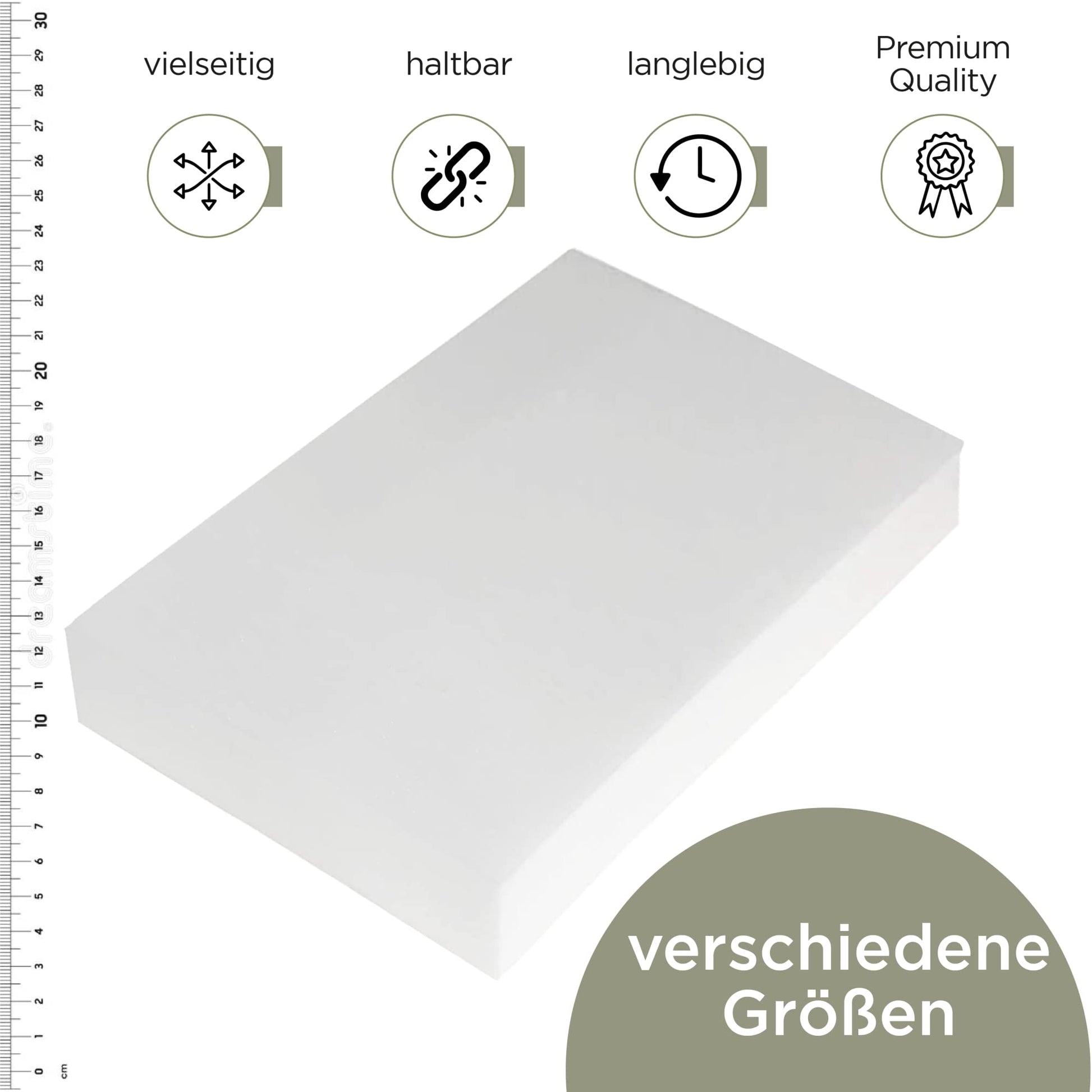 ["Our foam sheet RG27/45 in the size 200 x 60 x 10 cm is produced in Brandenburg an der Havel (Germany). The foam sheet is ideal for padding furniture, crafting, and as packaging material (e.g. cushioning sensitive objects/surfaces during moves). Processing is quite simple. Thicknesses up to 3 cm can be easily cut with scissors. A utility knife is suitable for thicknesses up to 7 cm, and an electric kitchen knife for thicknesses up to 20 cm. Our recommendations: Seat cushions, packaging material, sound insulation = 2-6 cm | Pallet cushions, reclining elements, caravan upholstery = 8-10 cm | Mattresses, sports mats from 10 cm. The high-quality, breathable, shape-stable foam sheet is freshly cut, foiled, and packaged for you. The foam is tested according to Oeko-Tex standard 100 (13.0.23040) and is suitable for allergy sufferers and babies. Shipping: The foam sheet is shipped rolled up. Please note: Depending on the thickness of the foam sheet, it may take up to 24 hours for the foam to completely expand after unpacking."]
