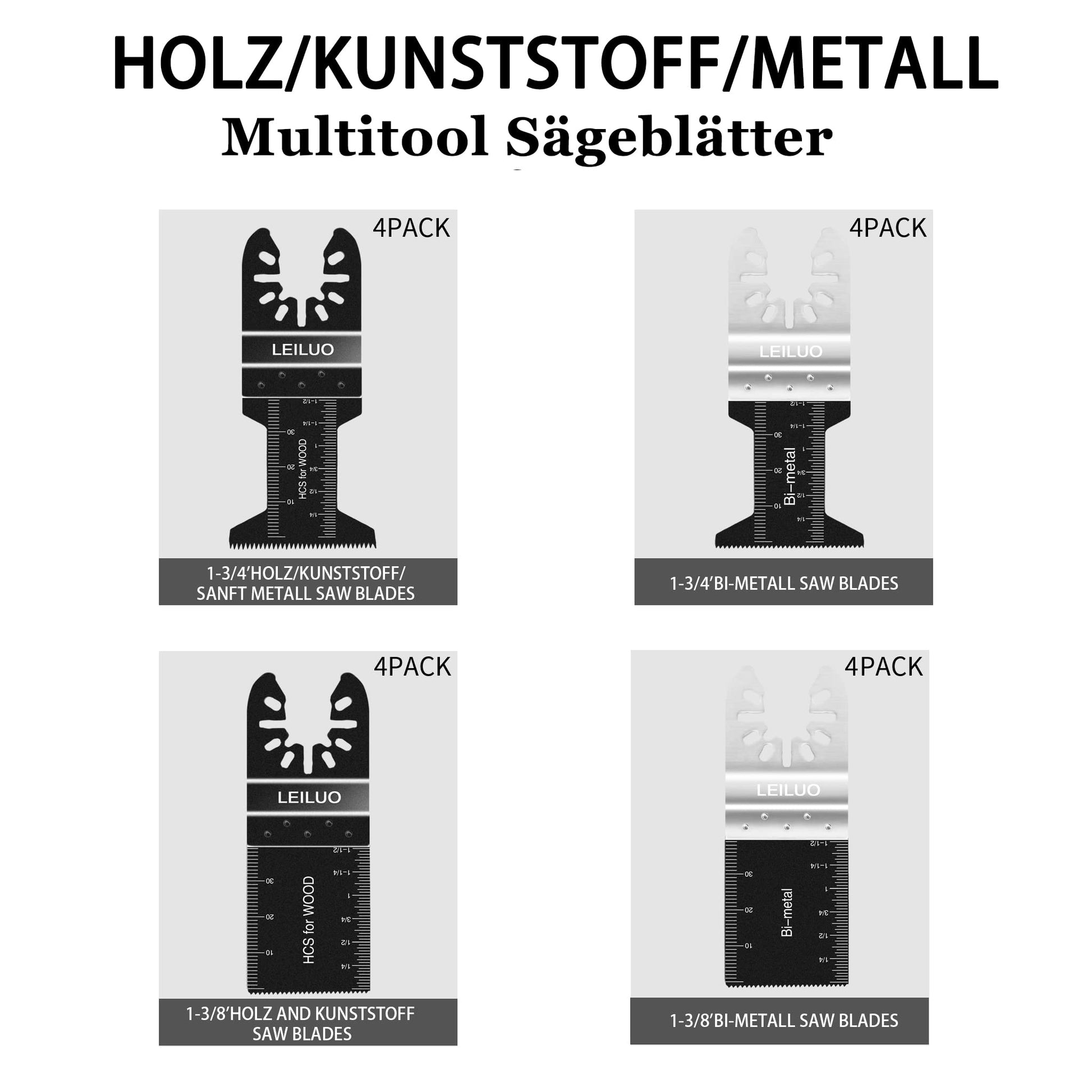 "Multitool saw blades LEILUO 31 piece wood plastic metal multifunction tool accessory set Packed in a storage bag for Makita Einhell Dewalt Parkside Ryobi AEG and more"