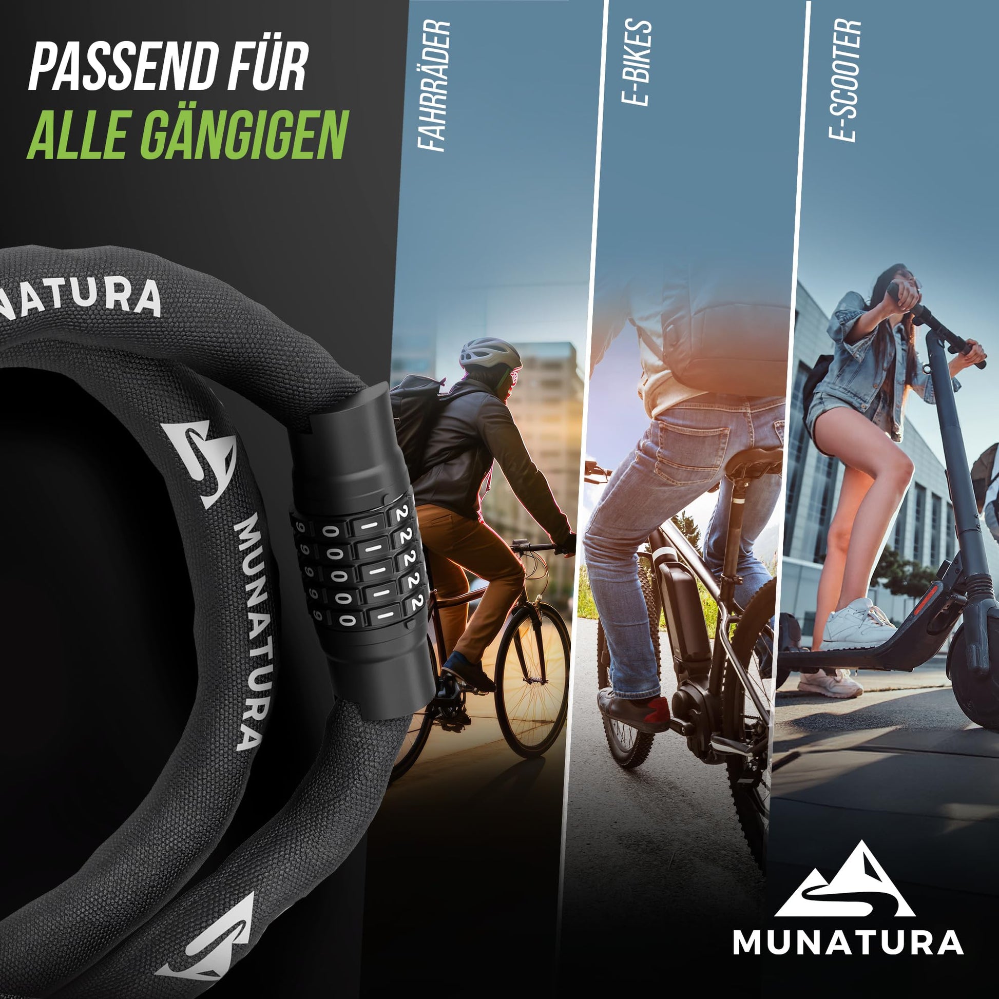 MUNATURA Bike Lock Combination Lock [100cm] - High Security Bike Lock - Bicycle Combination Lock - Bike Lock also perfect as E-Bike Lock