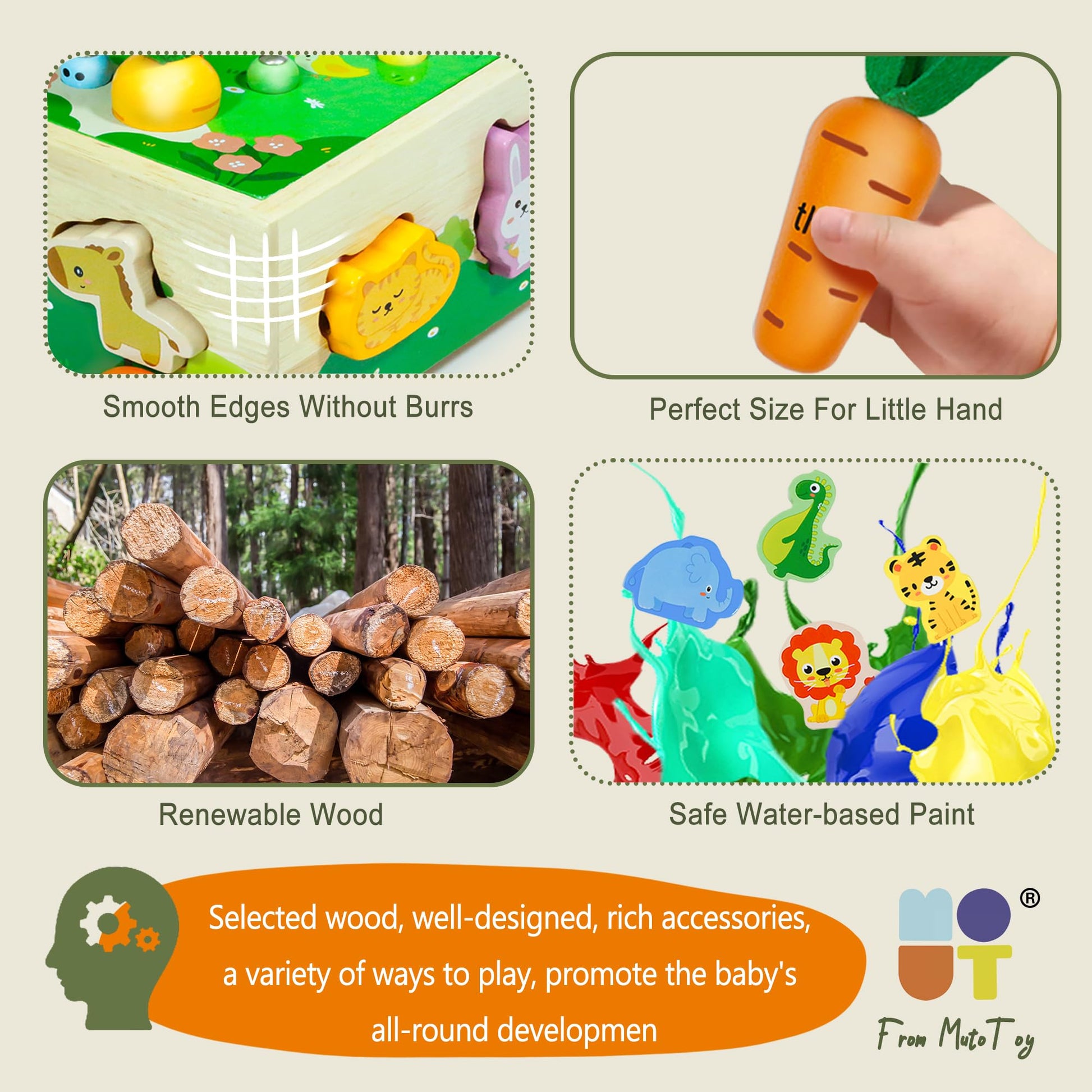MutoToy® Montessori Toy for 1 year olds, 6 in 1 Multifunctional Wooden Toy for 1 2 3 year old kids, Farm Motor Skills Toy made of wood, Animal Sorting and Stacking Learning Toy Gift for Girls Boys.