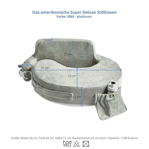 "The super deluxe model of the American breastfeeding pillow from Baby Wild and My Brest Friend with a cold foam core made of 100% polyurethane and a removable, machine washable, extra soft, cuddly baby plush cover made of 100% polyester. Color: Platinum"