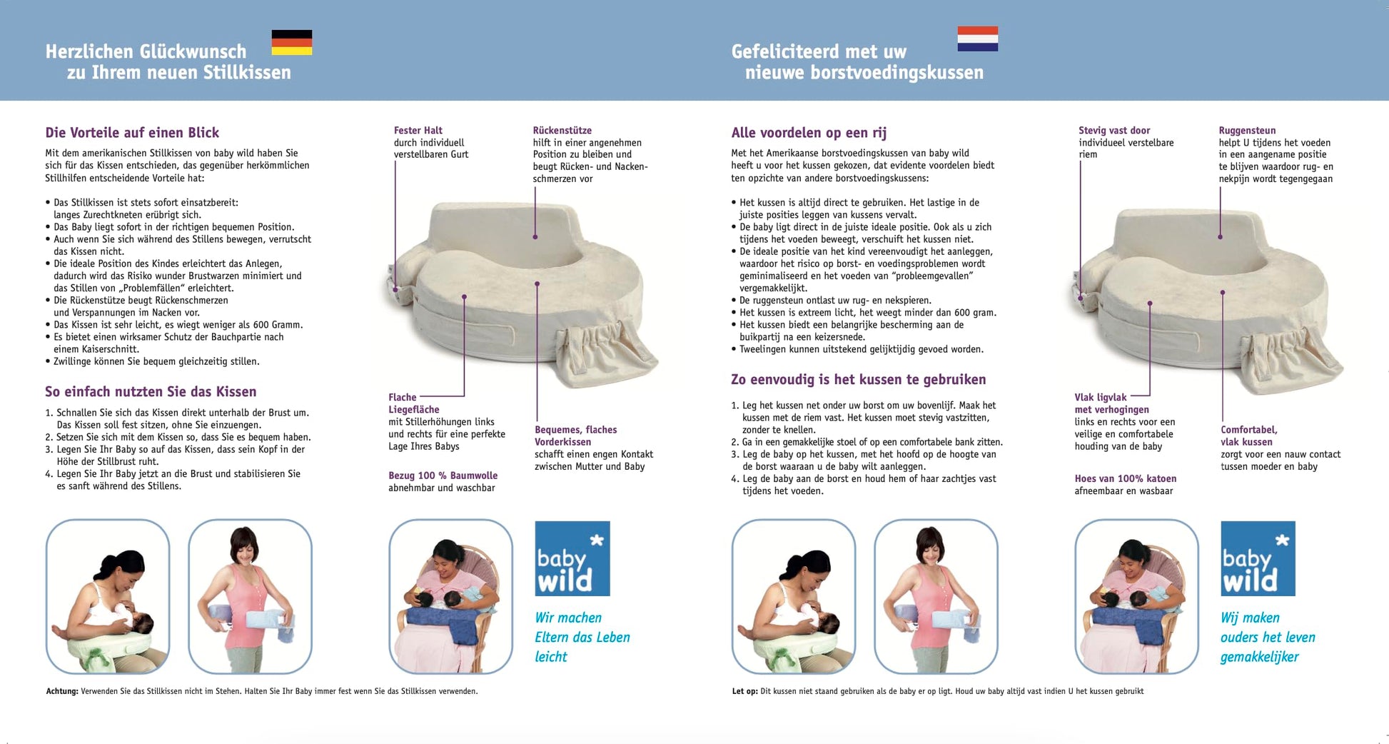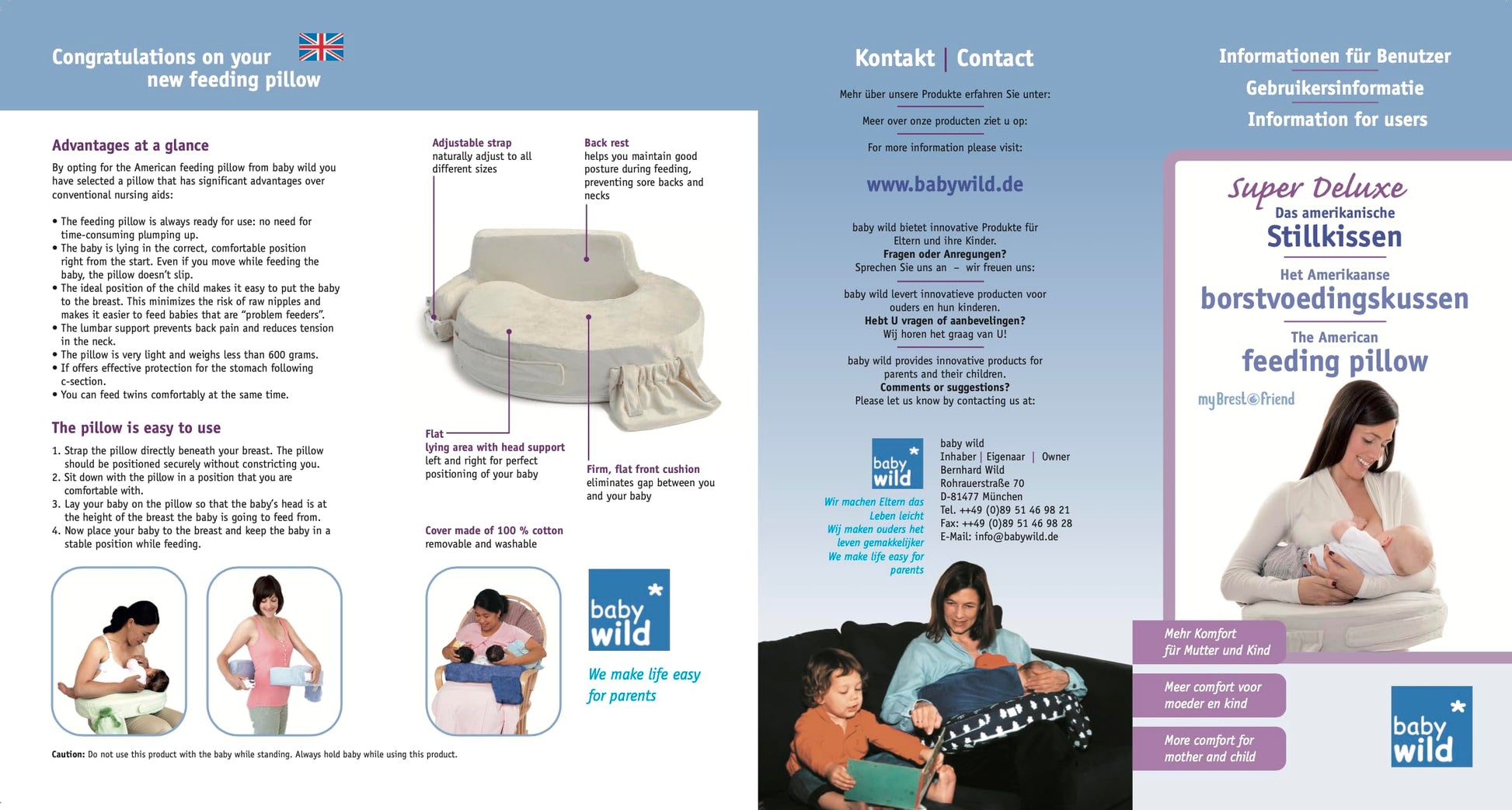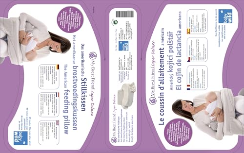 "The Super Deluxe model of the American nursing pillow from My Brest Friend & baby wild. Extra high back support, sturdy foam core with waterproof inner cover. Soft, cuddly baby plush cover made of 100% polyester.