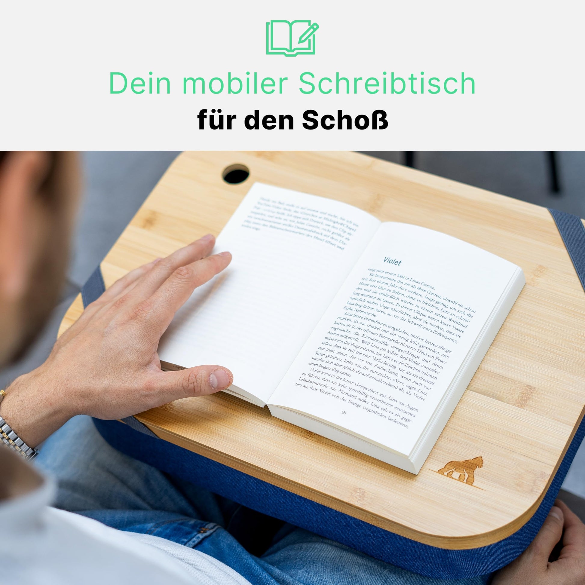 MY FAT GORILLA Laptop cushion bamboo with storage compartment and cable hole, laptop pad for up to 17 inches, laptop table for bed, laptop work tray, laptop table for sofa, laptop cushion wood