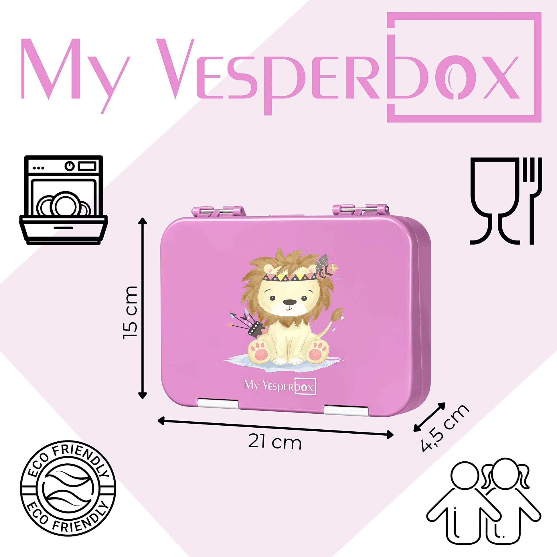 My Vesperbox - Len - Bento Box for Kids - Lunchbox with 4+2 compartments - extremely durable - sandwich box - ideal for kindergarten and school... (Pink - Native American lion with arrows)