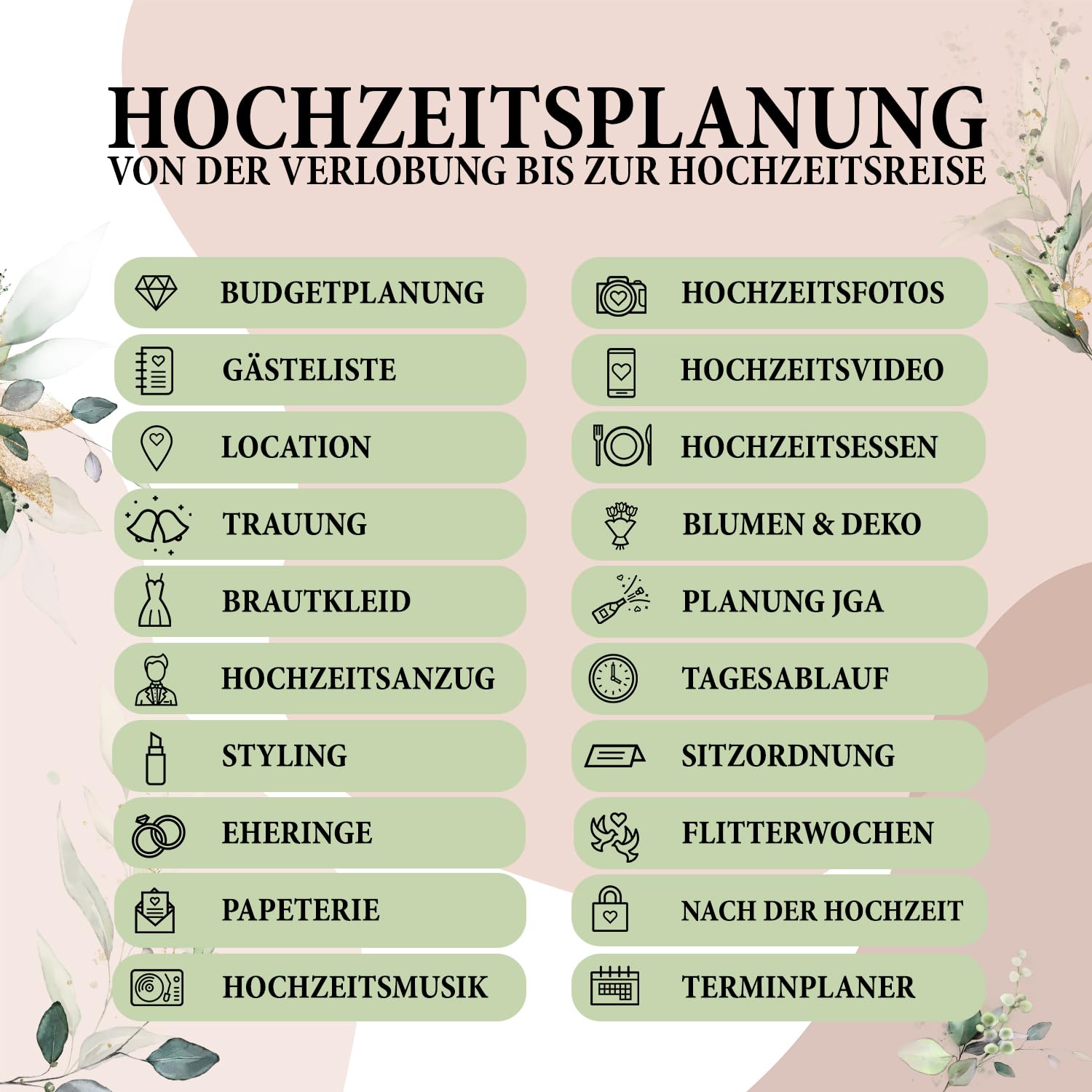 ["π DREAM WEDDING - With the comprehensive Wedding Planner by Stefanie Reindl Photography, you have everything you need for planning your dream wedding at hand!","π PLANNING AID - The dependable Wedding Organizer supports you with numerous checklists, the budget planner, as well as practical tips for wedding planning.","π BONUS MATERIAL - The most beautiful day in life requires a lot of preparation! Additional note pages, practical to-do lists, and much more are available to you as PDFs.","π PLENTY OF CAPACITY - The well-thought-out A4 wedding binder offers plenty of space to store invoices, quotes, and additional notes. This way, you always keep an overview.","π EXPERT - Step by step to the absolute dream wedding! Look forward to the Wedding Organizer by Stefanie Reindl, created with a lot of attention to detail."]