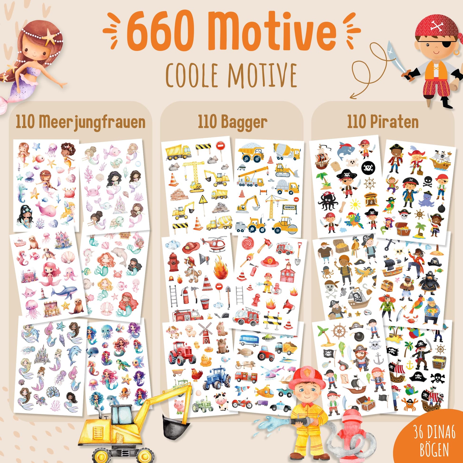 💡VARIOUS BUNDLE SIZES: Each individual set contains 6 DIN A6 sheets with a total of 110 stickers, including a small mini puzzle. Depending on the bundle size, you can receive up to 660 children's tattoos.