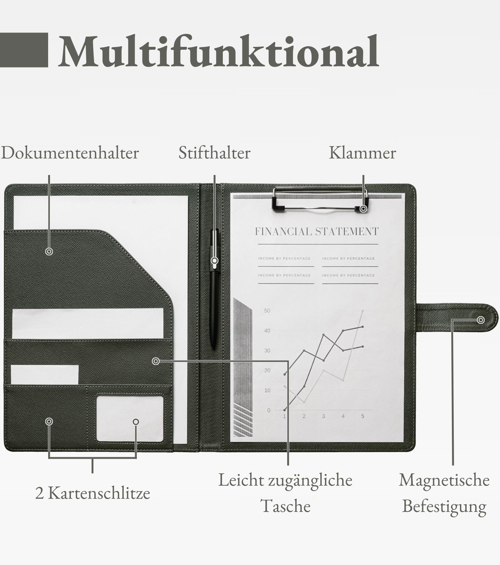 MyMazn A4 Clipboard with Cover, A4 Folder Writing Pad Clipboard Folder, PU Leather A4 Conference Folder with Document Pockets, Pen Holder, and Magnetic Closure (Olive Green)