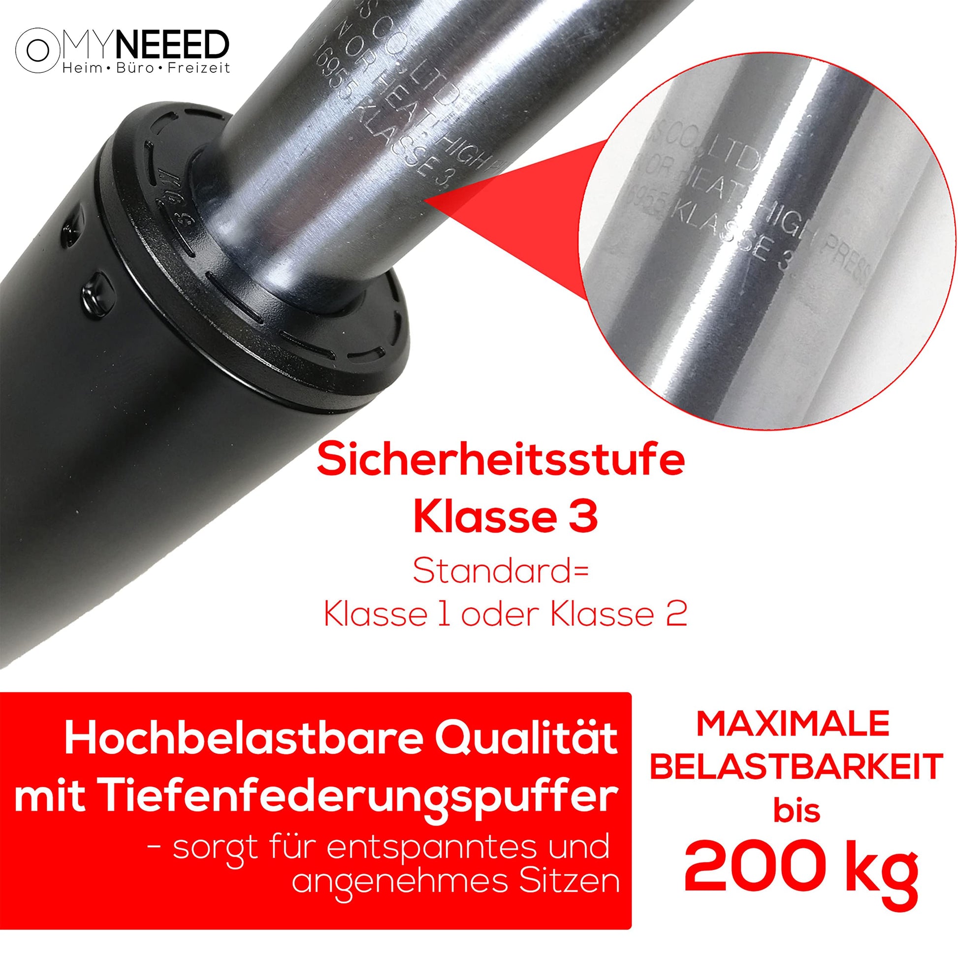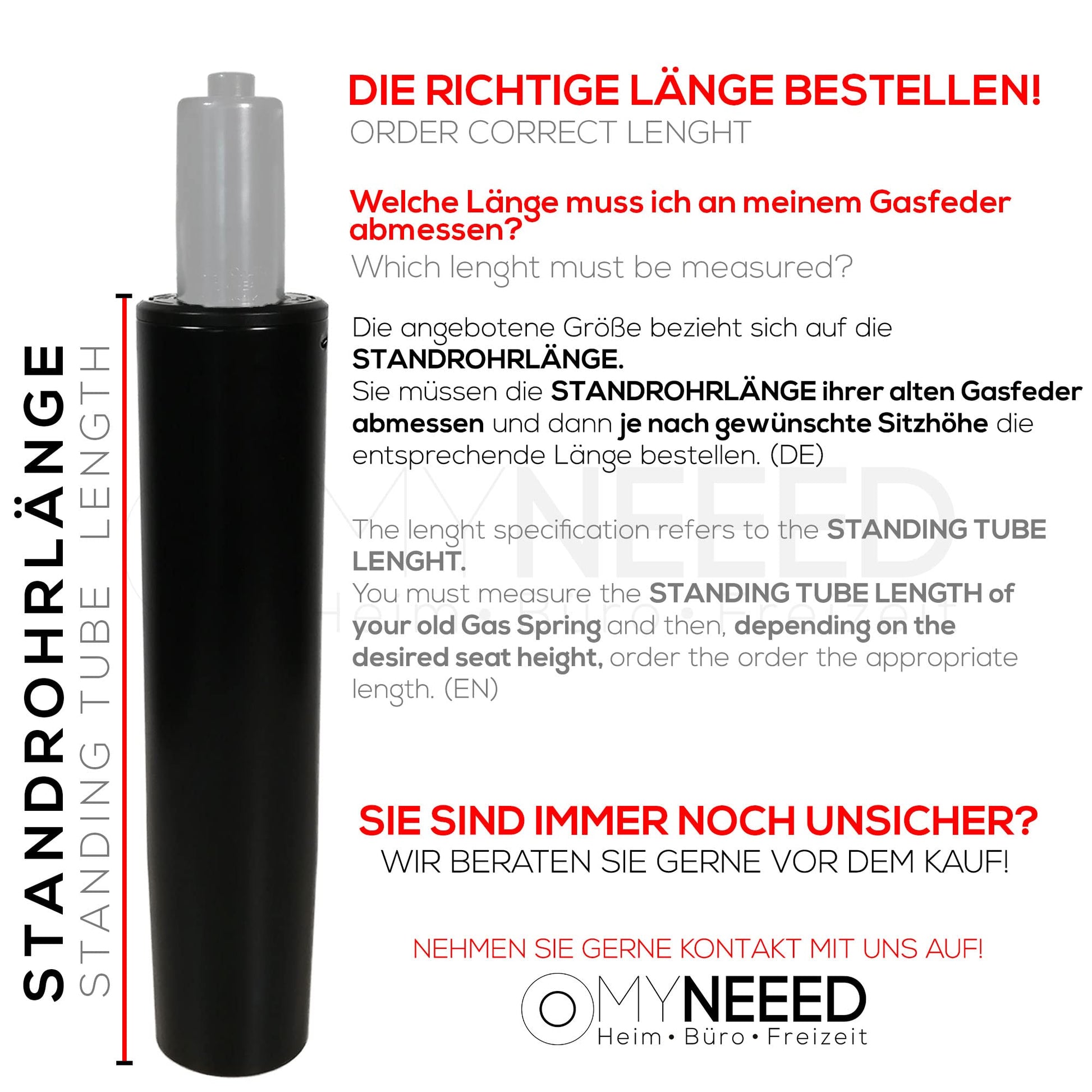 "EXTRA STABLE GAS SPRING - MYNEEED gas spring chair replacement replaces the defective spring on your office chair, providing smooth height adjustment and increased stability thanks to high safety class."