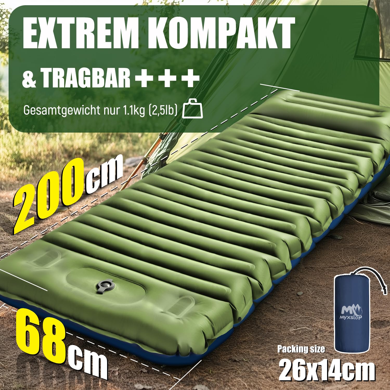 Myxslop Camping self-inflating sleeping mat, 12CM thickened camping air mattress, inflatable mattress with foot pump & pillow, ultralight sleeping pad for hiking, beach, travel, tent.