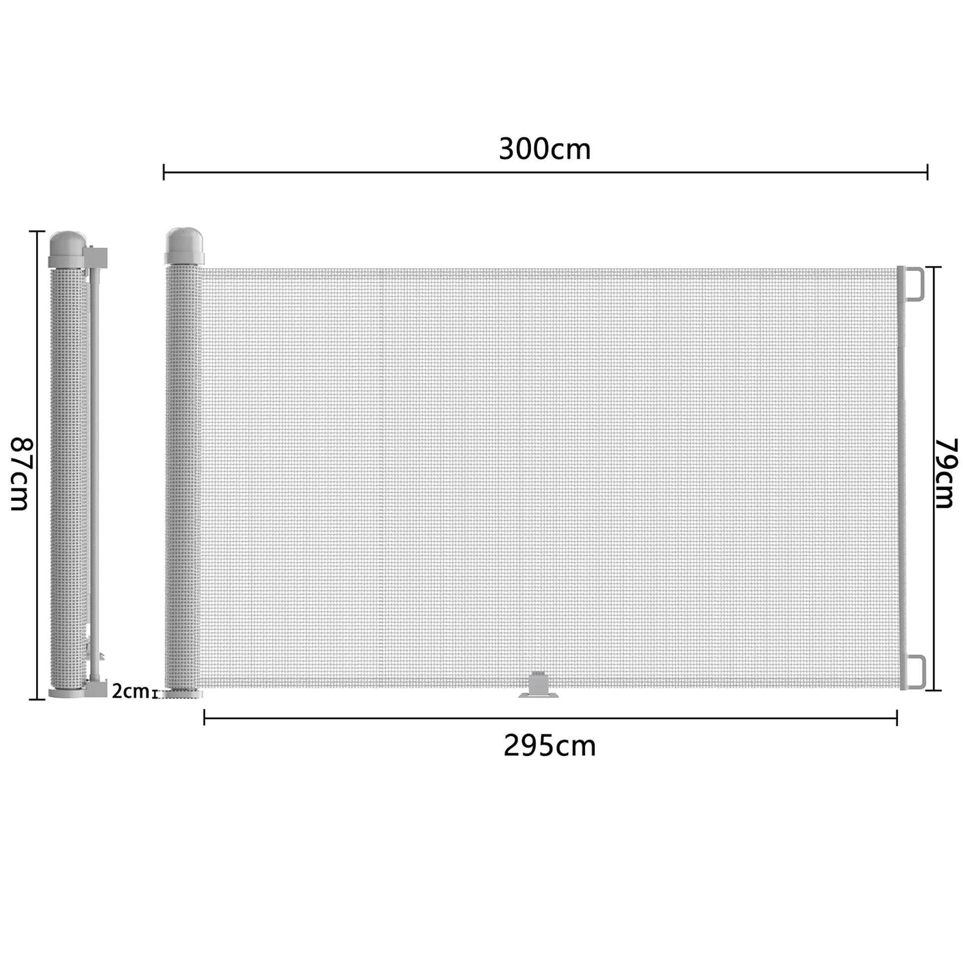 NAIZY door gate roller 0-300cm stairwell roller baby stair gate and dog door gate retractable door retractable dog barriers for indoors and outdoors - Gray