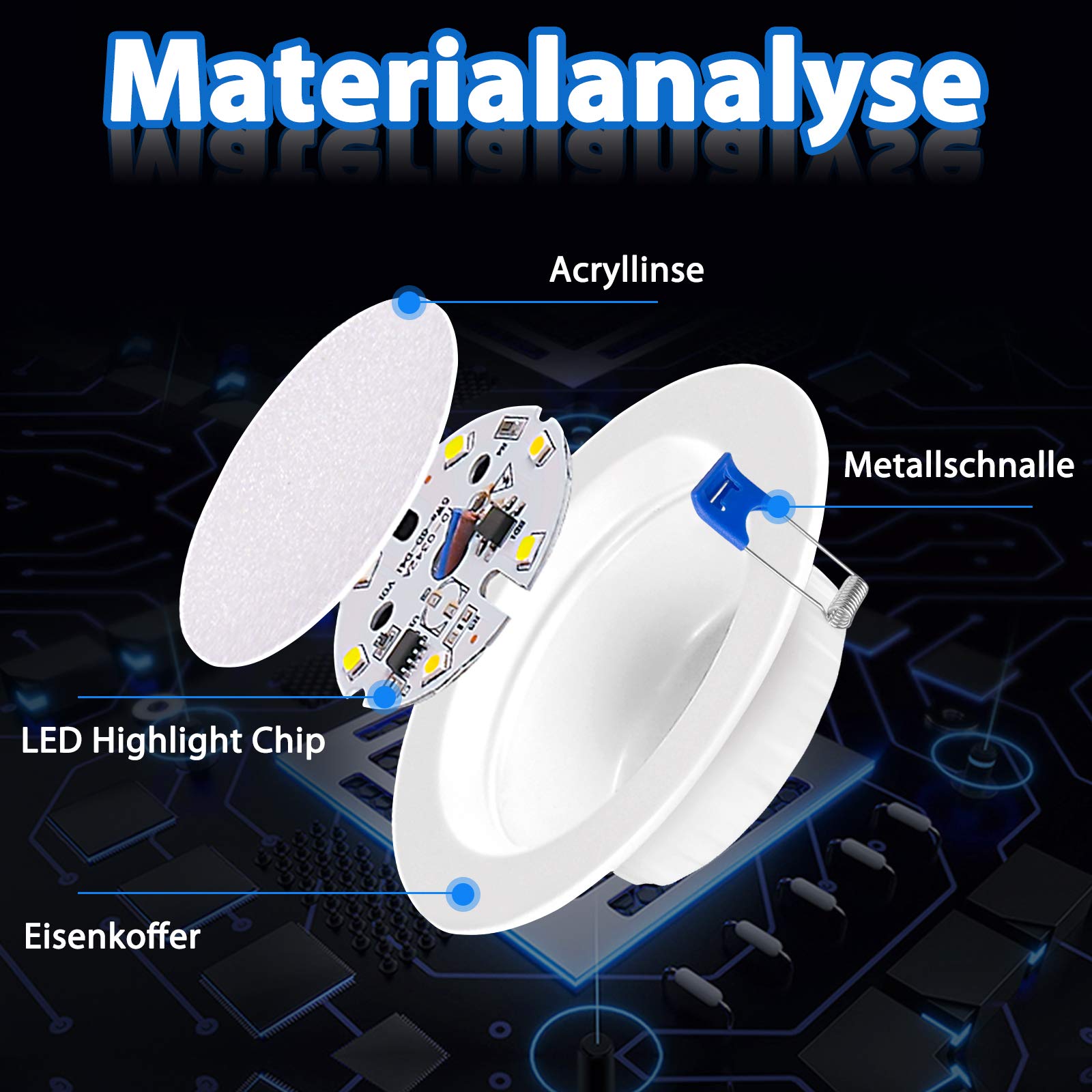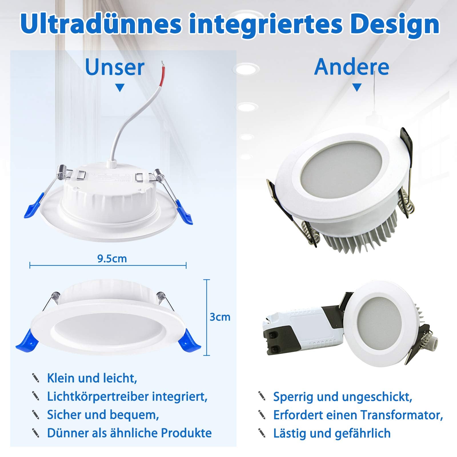 LED recessed ceiling lights - 20 pack 5W LED spot, Cutout size: 75 mm - 95 mm, Installation depth: approx. 25 mm, Color temperature: 6000K, Color: Cool white