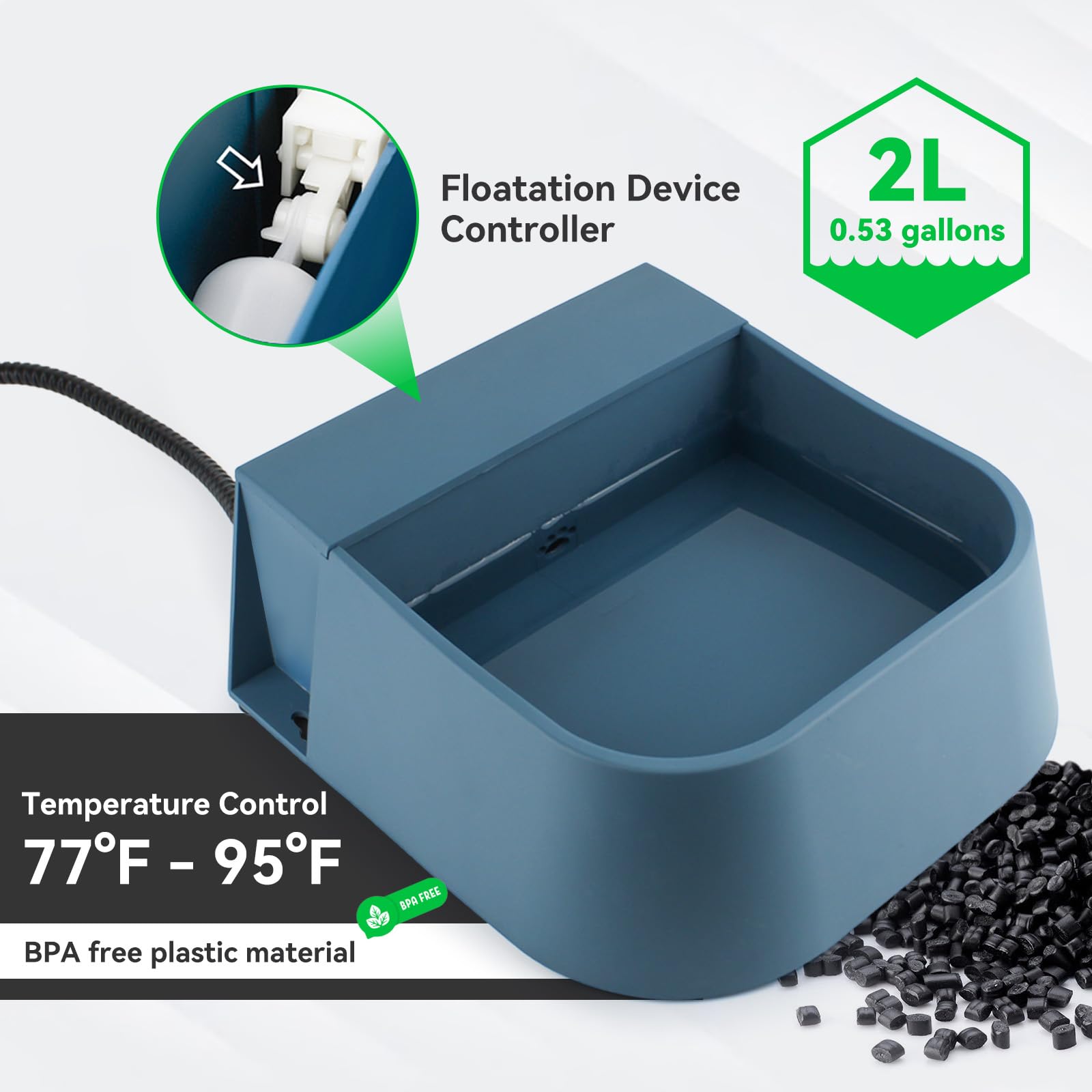 "Automatic water storage bowl that can prevent water from freezing: The product has a new feature that can prevent water from freezing. The bowl can not only automatically store water, but also prevent freezing. Suitable for cold winter or extreme weather.