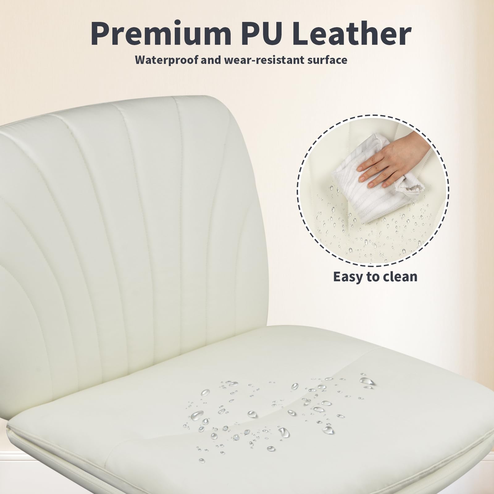 Naspaluro Office Chair Without Armrests, Desk Chair with PU Leather, Reading Chair with Wider Cushion for Cross-Legged Sitting, Rocking Function, Height Adjustable, 360° Swivel Chair for Home, Cream Color