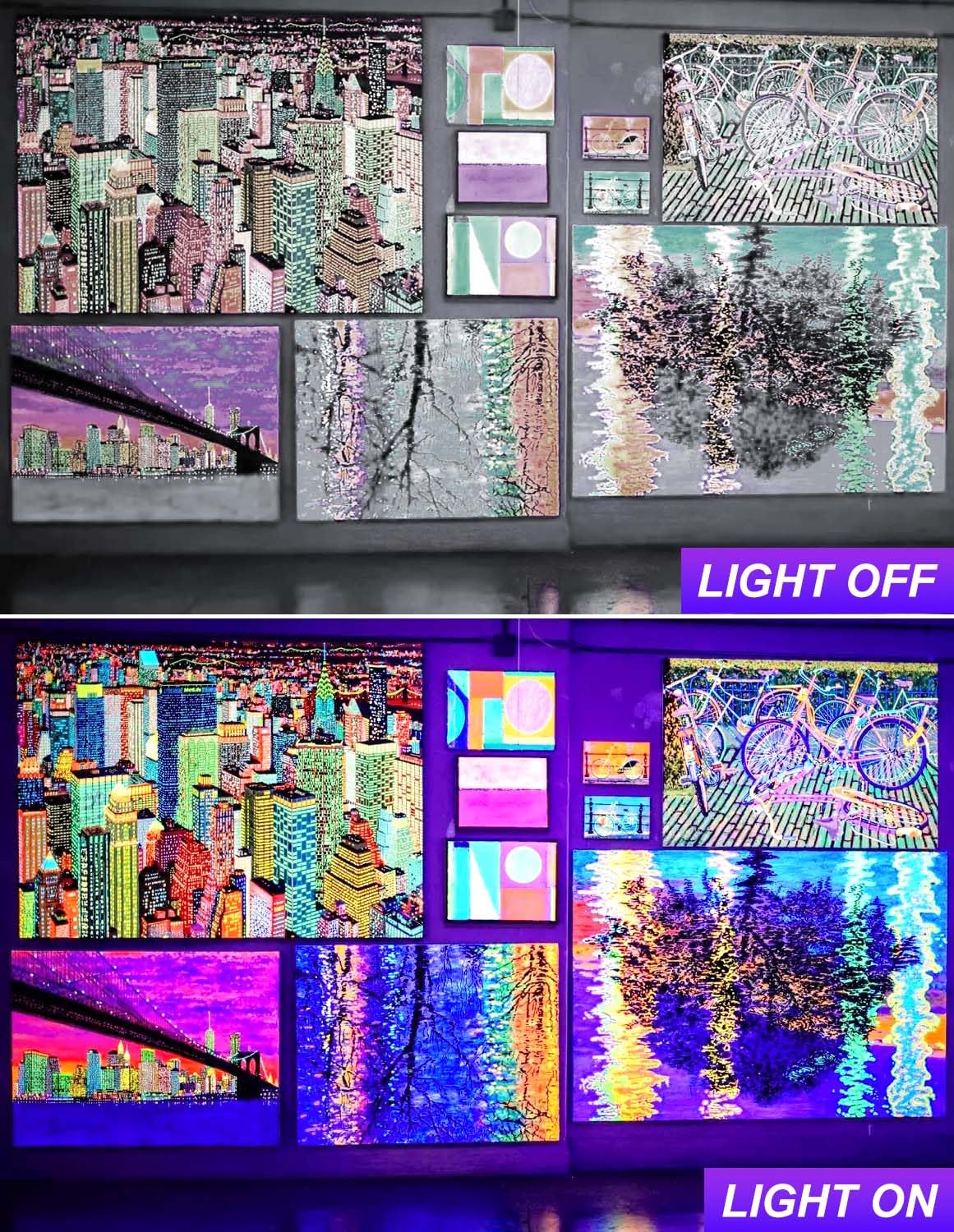 "Professional outdoor blacklight: Our blacklight is made of high-quality aluminum material, IP65 waterproof, and better heat dissipation. The LED blacklight's lifespan can reach 50,000 hours, longer than traditional lighting and more energy efficient. And this spotlight has a 120-degree beam angle and can project light with a wavelength of 400-405nm to ensure that your target area is fully illuminated to the fullest extent,"Fluorescent reflection: Blacklight floodlights are suitable for illuminating most reactive pigments, colors, and dyes. Blacklight is particularly suitable for neon-colored objects, ideal for visible fluorescent materials. LED blacklights are widely used for Halloween, Christmas, glow party, club, bar, yoga, and holiday decoration,"270° adjustable angle: The outdoor lighting with a 120° beam angle and a 270° adjustable lamp head allows you to focus the light on specific areas or objects such as walls, trees, flags, or lawns and put them in the spotlight at night. The blacklight can also provide safe lighting for your yard, garden, driveway, and swimming pool,"Easy to install and use: Plug the black outdoor light into the ground or attach it to the wall with the included screws, then turn on the switch to use the lighting. Easy to install and use. This landscape light also comes with a 5.9inch power cord with a US plug, suitable for AC180-240V AC input,"After sales service: NATPOW is committed to providing high-quality after-sales guarantee for every customer, ensuring that you receive satisfactory LED lights. If you encounter any damage or malfunction while receiving this package or using this light, or have any other questions, please feel free to contact us and explain the specific situation. We will provide you with the best solution within 24 hours."