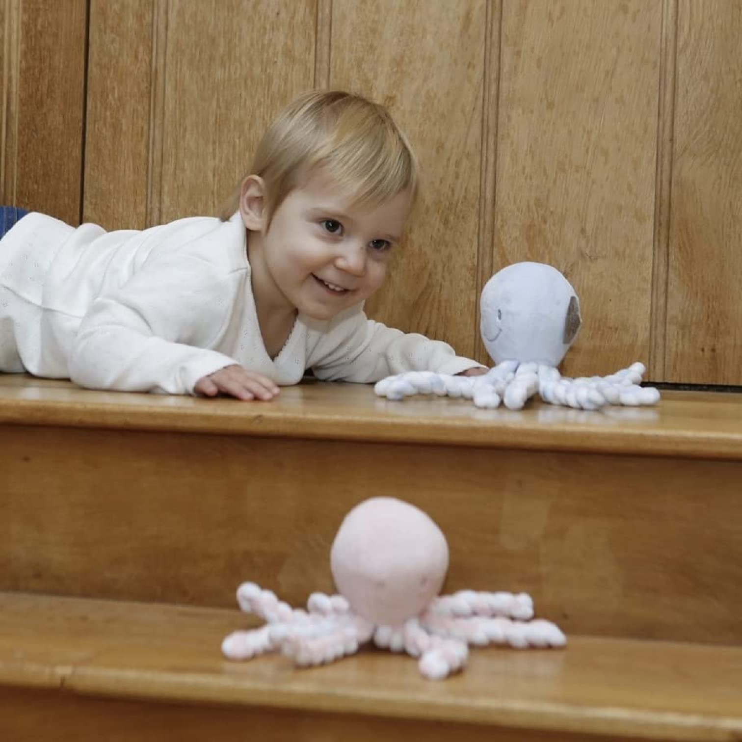 Innovative plush toy: Tentacles resemble the umbilical cord and were specially designed for the natural grasping reflex of newborns.