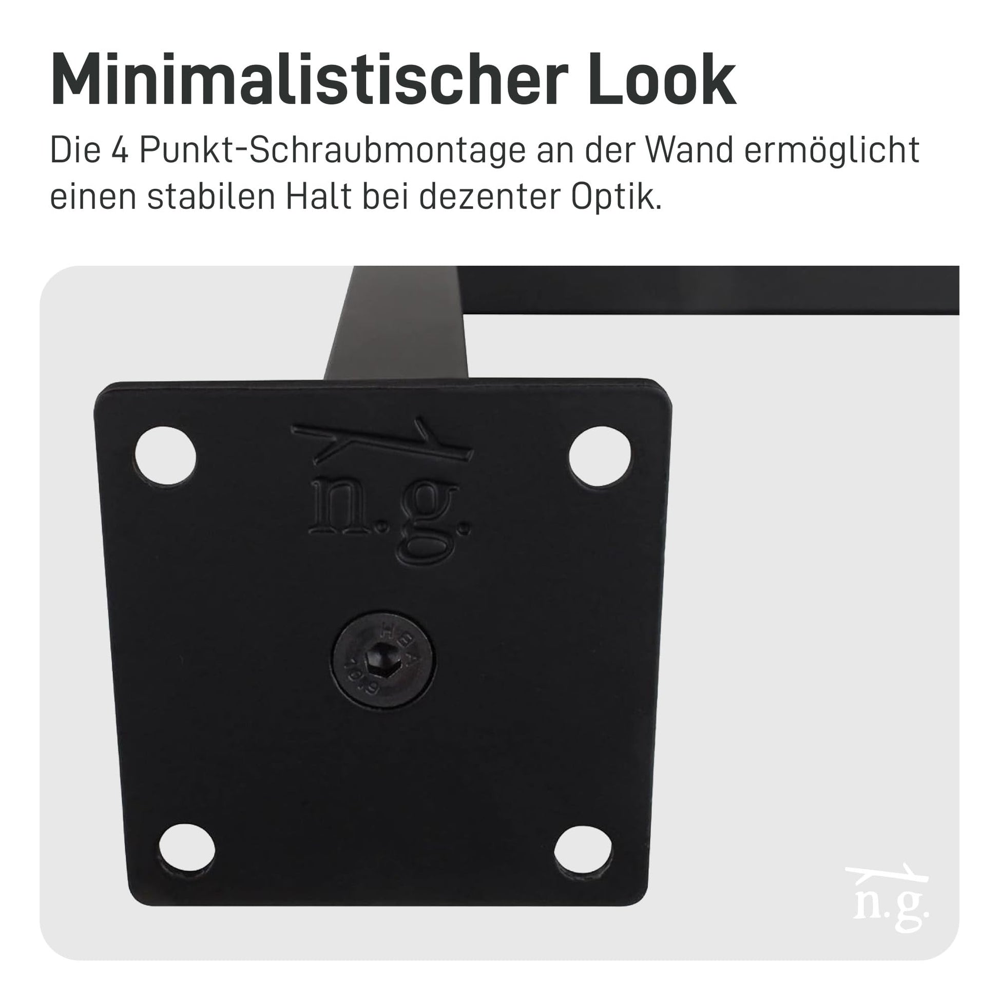 Natural Goods Berlin 1x Clothes rail CORNER wall mounting - L-shaped coat rack for hallway, bathroom or kitchen (Black, 90x30cm) - Corner wardrobe made of stainless steel in minimalist design