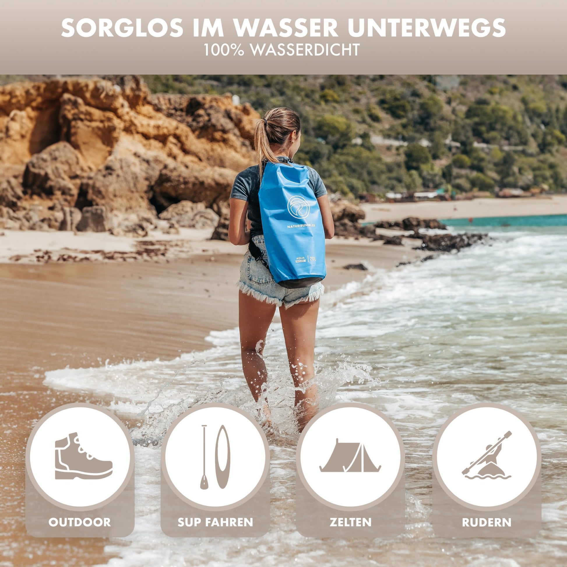 NATURBUMMLER® Dry Bag 10L [Aqua Secure+] 100% waterproof bag with shoulder strap & backpack function - waterproof pack for SUP, fishing, camping & outdoor - Drybag pouch (navy blue)