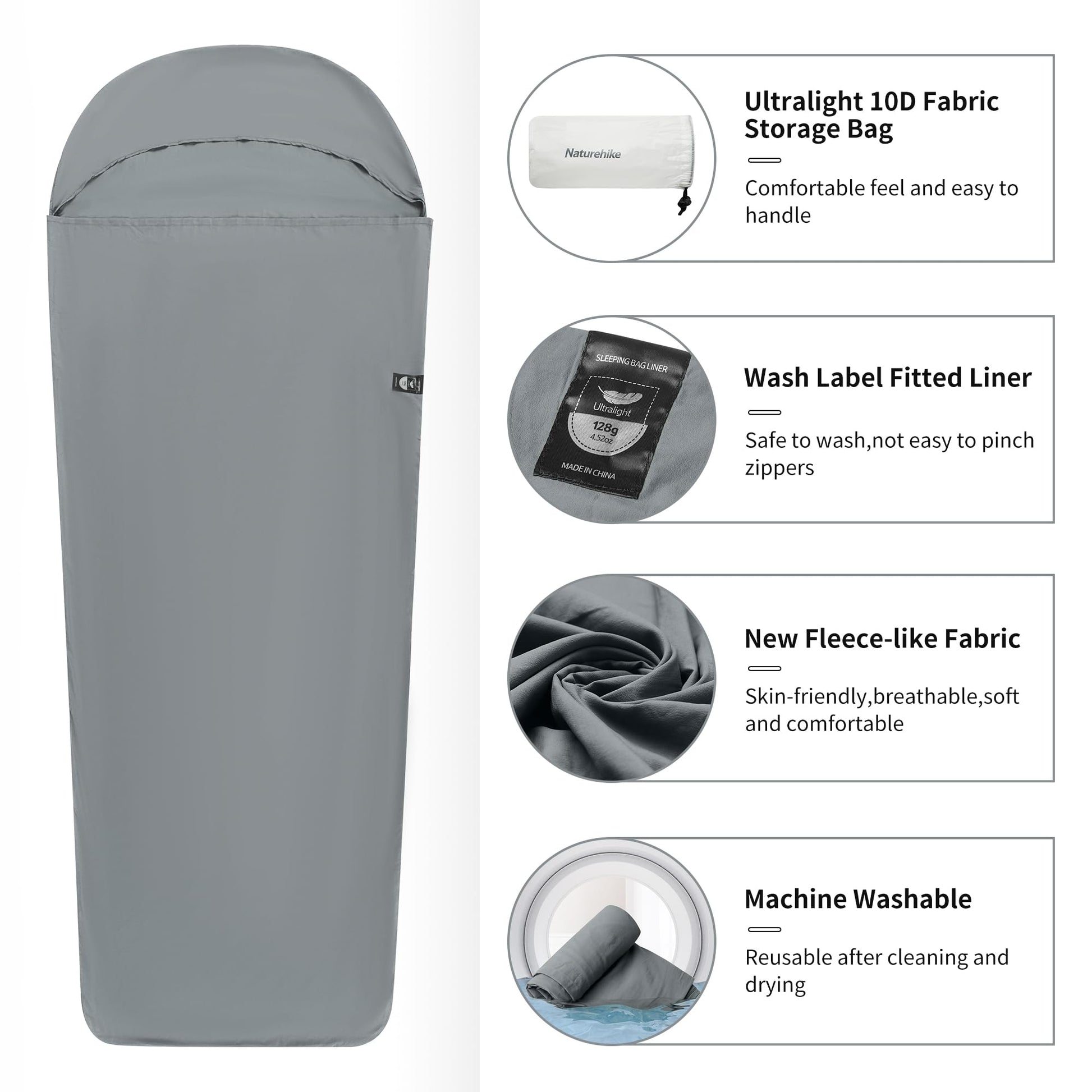 Naturehike ultralight hut sleeping bag liner only 128g travel blanket with small pack size inner sleeping bag for backpacking, hostels, cabin camping.