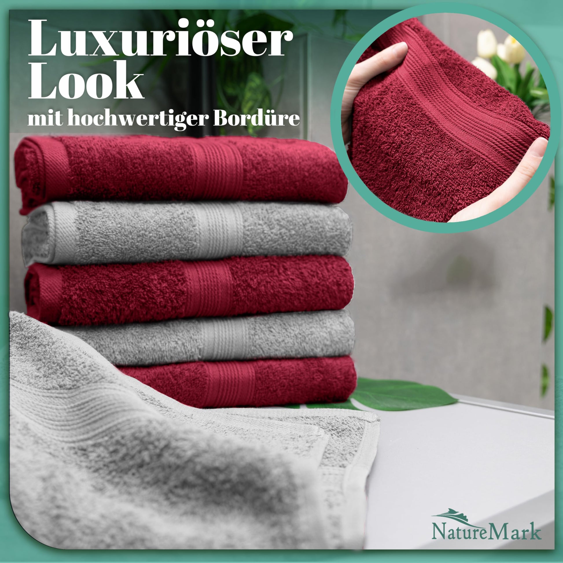 NatureMark 8-pack towels, 100% cotton, 50 x 100 cm, towel set Silver/Bordeaux.