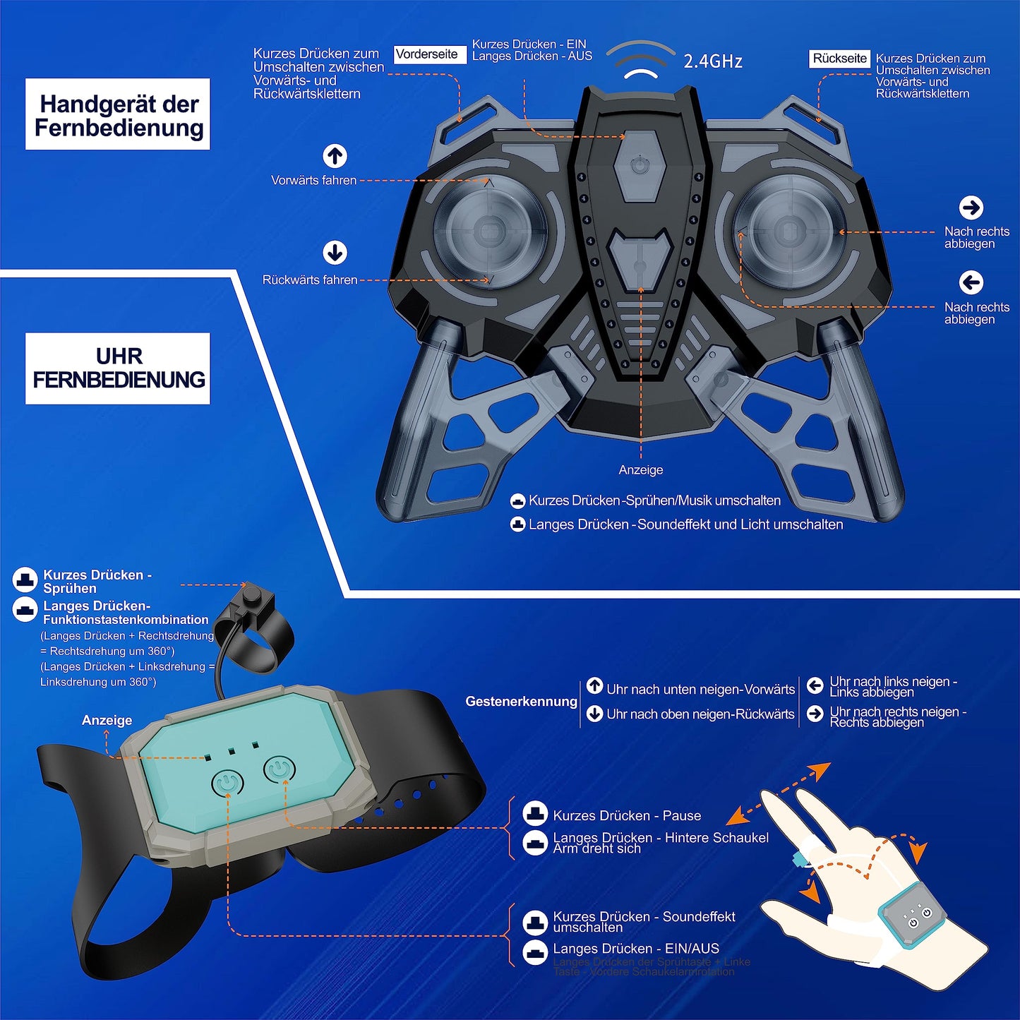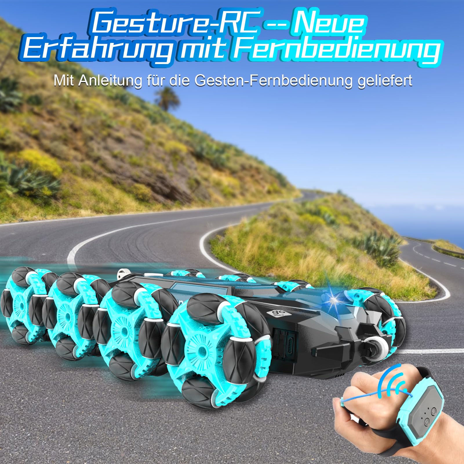 Nauotk Remote Control Car, 2.4 GHz RC Car for 6 7 8 9 10 11 12 years old, 8WD Stunt Drift Car with Gesture Sensor, Cool Lights and Spray Mist, 2 Battery Toys, Kids Robot-Blue
