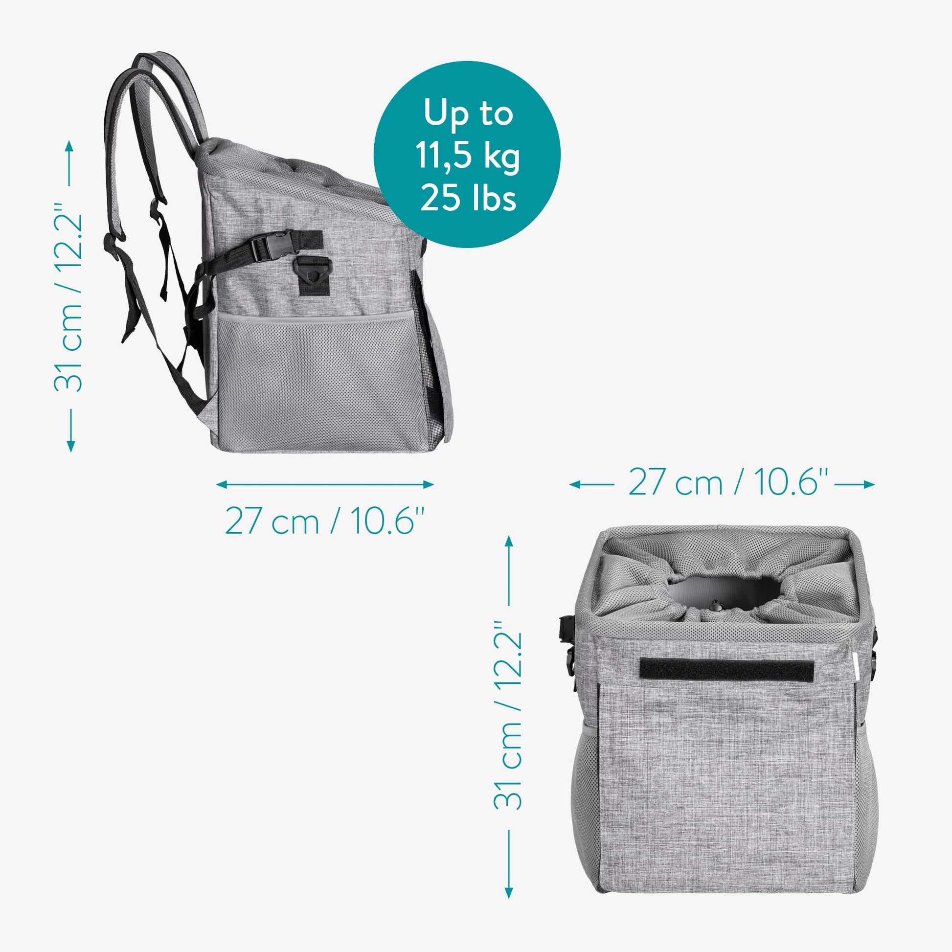 ["ON THE ROAD: Take your cat or dog on long bike rides, walks, trips or comfortably transport them to the vet with the pet backpack. Please consider the changed balance while driving!","COMFORTABLE TRANSPORT: Your four-legged friend is bedded in the carrier on a fluffy and soft surface. Padded back panel and shoulder straps also ensure a comfortable carrying feeling.","DETAILS: 1x carrier backpack for vet visits or hiking / made of polyester / for pets up to 10kg / dimensions: 31 x 27 x 27 cm / weight: 1 kg","SIZE NOTE: The transport backpack is suitable for pets up to 10 kilos. Please make sure before purchase if your favorite fits in the carrier.","EASY APPLICATION: Open the backpack and insert the support stands into the designated slots inside. Now insert the back plate and foam into the back of the bag. Finally, the fleece mat goes into the pet backpack."]