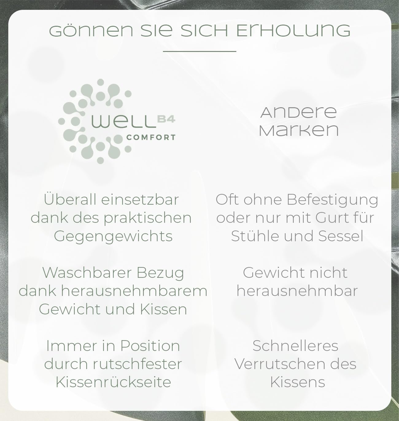 ππ π ππ₯ ππ‘ π£π’π¦ππ§ππ’π‘ β The headrest ensures the perfect grip on chairs, TV chairs, or bed headboards with its unique combination of counterweight and non-slip back.","β