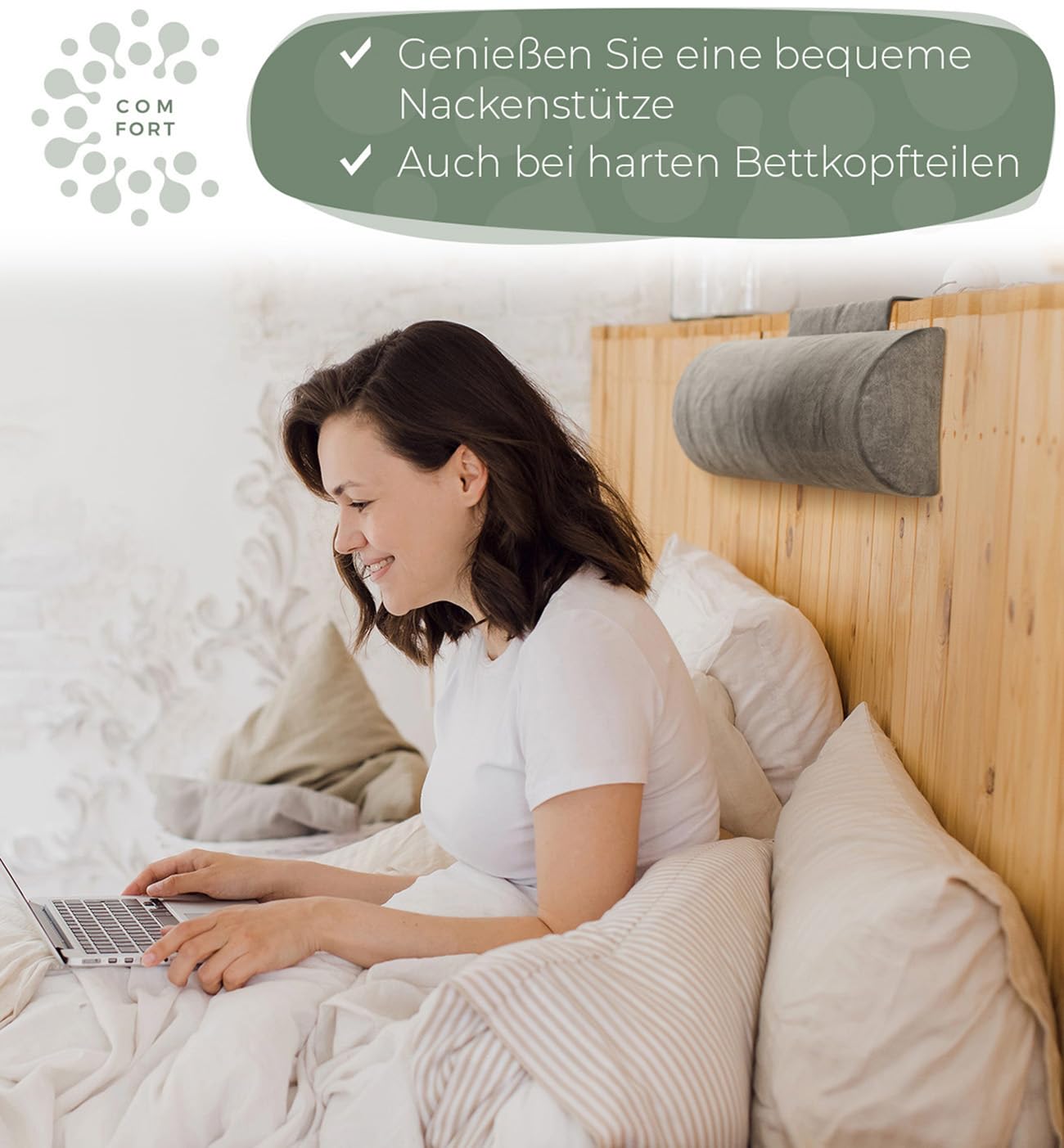 Neck roll for chair with counterweight (100% memory foam), neck pillow for sofa couch hanging, neck support for headboard bed, pillow for lounge chair, ergonomic neck pillow, neck roll.