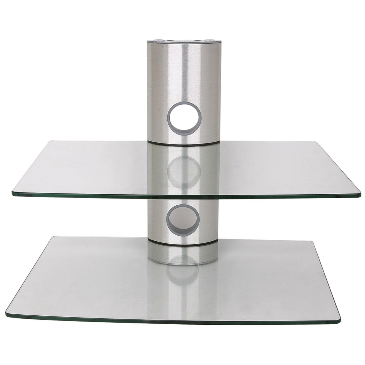 ["Floating Hi-Fi shelf for wall mounting","Extra-large glass shelves for Hi-Fi components, game consoles, or set-top boxes","Functional cable management system","Easy installation with angle bracket. Your components "float" on the wall","Available in 3 colors and 1, 2, or 3 glass shelves in transparent or black"]