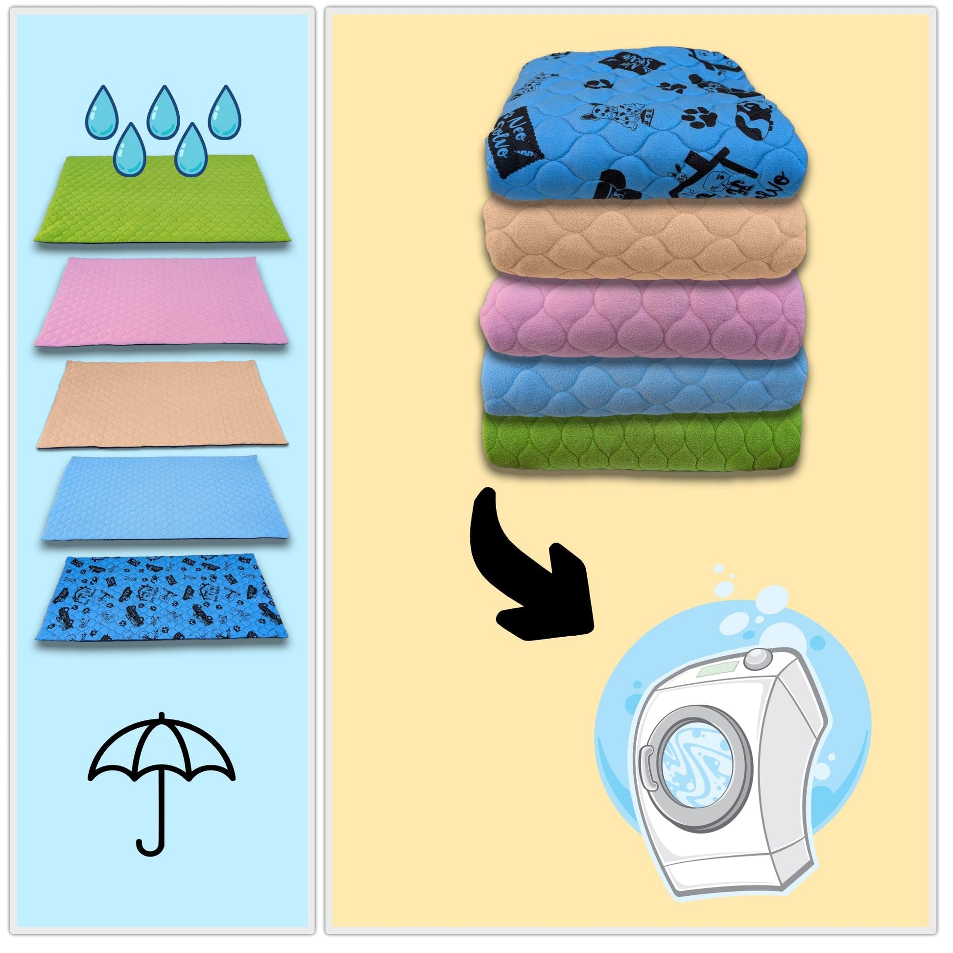 ["REPLACE ONCE - This cage liner is ideal for cages, playpens, and C&C. It effectively absorbs urine and traps odors, providing a cleaner, more economical, and convenient alternative to traditional litter boxes.","ABSORBENT and WATERPROOF - With its absorbent fleece side, it retains moisture and prevents liquids from penetrating thanks to its waterproof bottom. A living space that is always dry and comfortable for your pets!","COMFORTABLE AND DUST-FREE - Soft underfoot, it protects rabbits and guinea pigs from irritations and respiratory problems caused by the dust of conventional bedding. Ideal for their well-being and health!","WASHABLE AND REUSABLE - Economical and ecological, it is easily machine washable and reusable, reducing your waste and costs.","VARIOUS SIZES AND COLORS - Available in multiple sizes and colors, suitable for your cage or enclosure. Give your little friends a clean, comfortable, and stylish place!"]