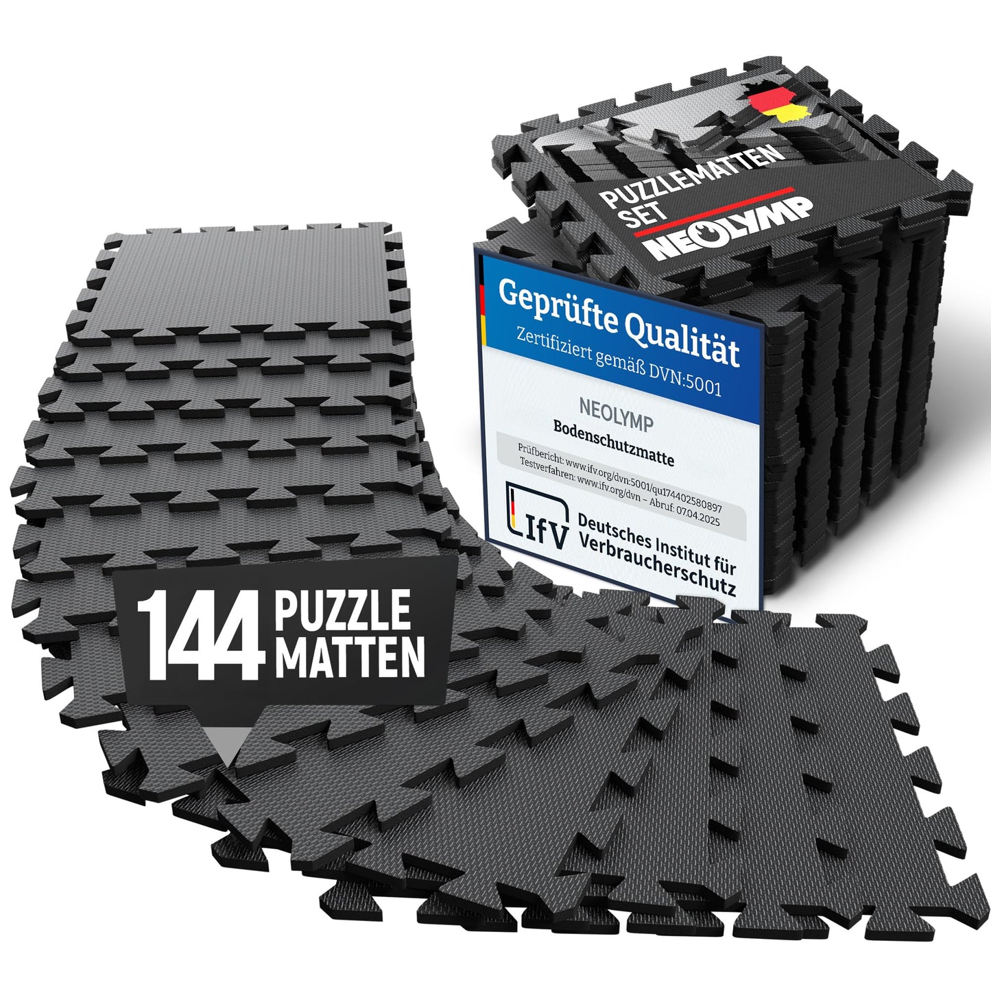 "The NEOLYMP fitness mat protects your floor and equipment from scratches, dents, and sweat. Ideal for fitness equipment, dumbbells, power stations, and treadmills. The foam mat is also non-slip and durable.