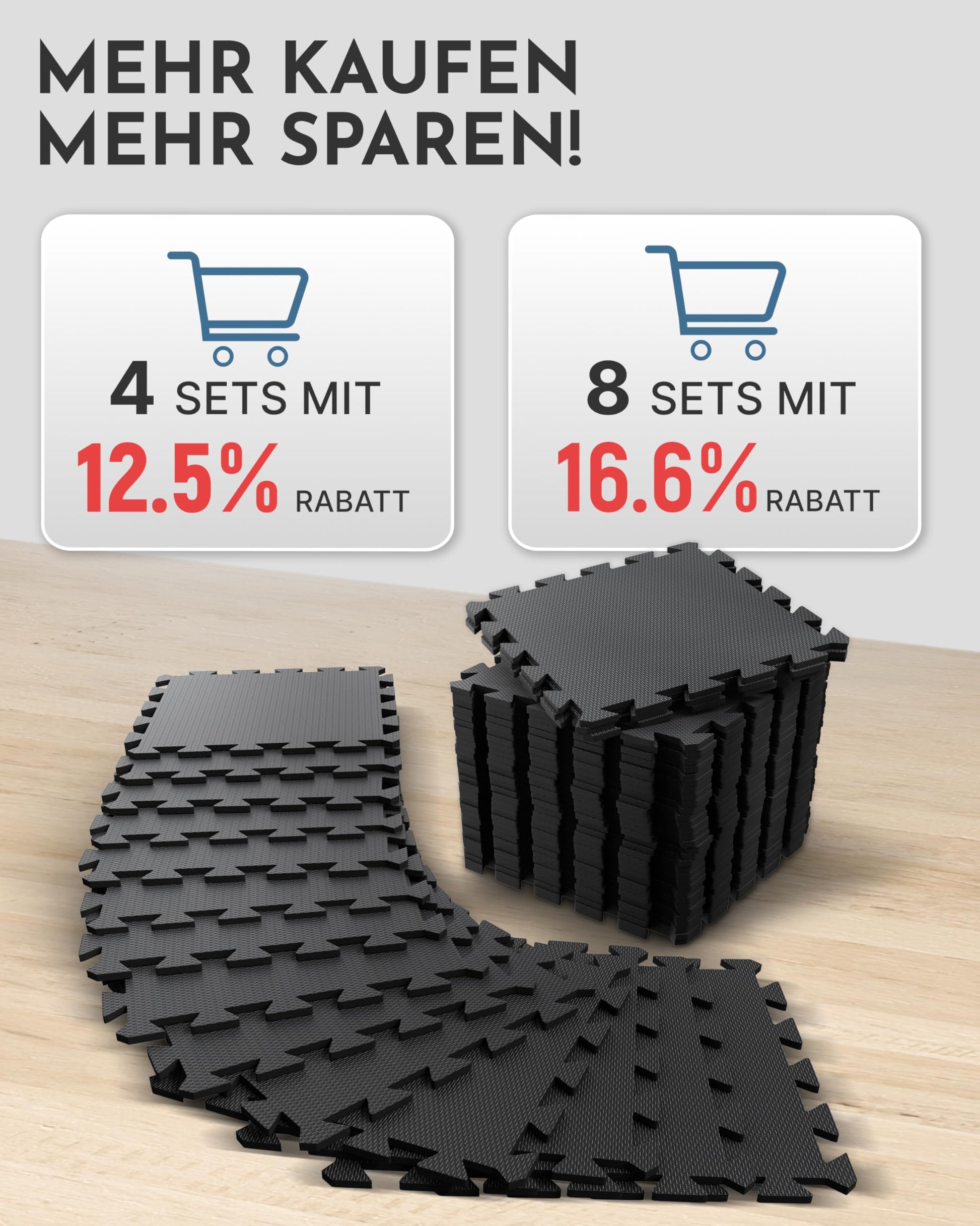 You will receive a home gym set with 144 floor protection mats and 216 edge pieces, allowing you to cover an area of 147 sq. ft. Whether you lay it out in a square or rectangular shape, thanks to the puzzle technique, the sports mat fitness mat is endlessly expandable and non-slip.