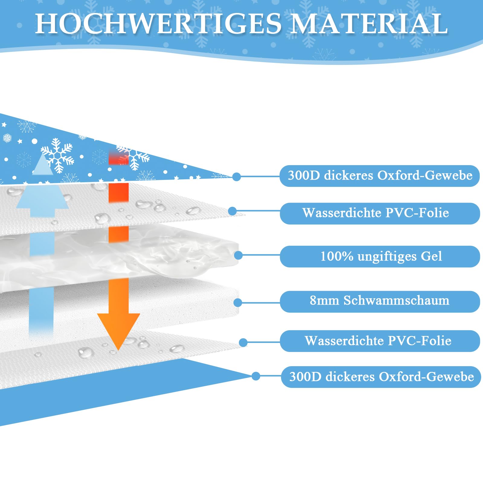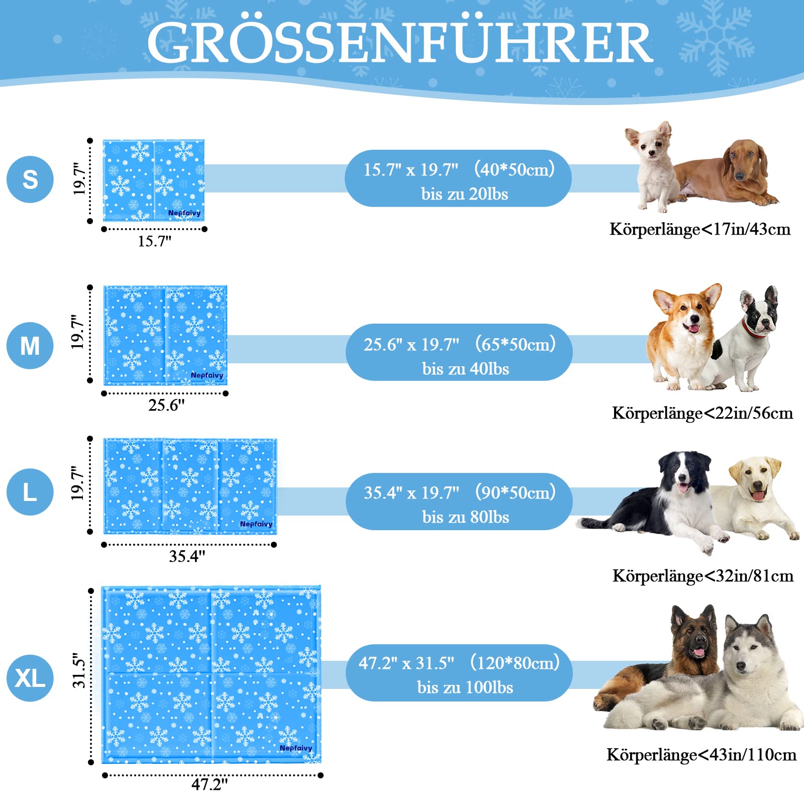 ["COOLING MAT FOR DOGS: This cooling mat for dogs is activated by weight or pressure, no need to add water or freeze or chill, so your dog only needs to lie on it and enjoy instant, continuous cooling. Because dogs have underdeveloped sweat glands and poor heat dissipation, our cooling mat effectively absorbs and regulates body temperature, helping them feel cooler and more comfortable in the summer.","HIGH-QUALITY COOLING MAT FOR DOGS: The outer layer of the dog cooling mat is made of Oxford and PVC material, making it durable, tough, and waterproof. The inside is equipped with elastic foam and a 100% non-toxic gel that is safe for both pets and humans. In the upcoming hot summers, this dog cooling mat will provide your dog with pleasant coolness and prevent overheating and dehydration.","EASY TO CLEAN AND PRACTICAL DESIGN: The cooling mat for dogs is very easy to clean. Simply scrub with a damp cloth. Not machine washable. The edge of the dog cooling pad is pressed twice with strong pressure to prevent leakage of the gel. Thanks to its foldable design, the cat cooling mat is space-saving and easy to store or take on trips.","WIDE APPLICATIONS: This dog cooling mat is 120x80cm large and we recommend it for large dogs and cats with a body length under 43cm. Our cooling mat is suitable for floors, sofas, dog beds, dog cages, or car backseats. Whether at home, in the garden, at the dog park, or while traveling, the dog cooling mat will keep your pet cool. Additionally, the dog cooling mat can be used as a laptop cooling pad or seat cushion, so you can also benefit from it.","EXCELLENT CUSTOMER SERVICE: Our durable and easy-to-care-for self-cooling mat is the perfect gift for your pet. These cooling mats for dogs are not chew-proof and scratch-resistant, and are not recommended for pets with strong chewing habits and very sharp claws. If your product is defective or if you have any other problems, please contact us. We will help you solve your problem within 24 hours."]