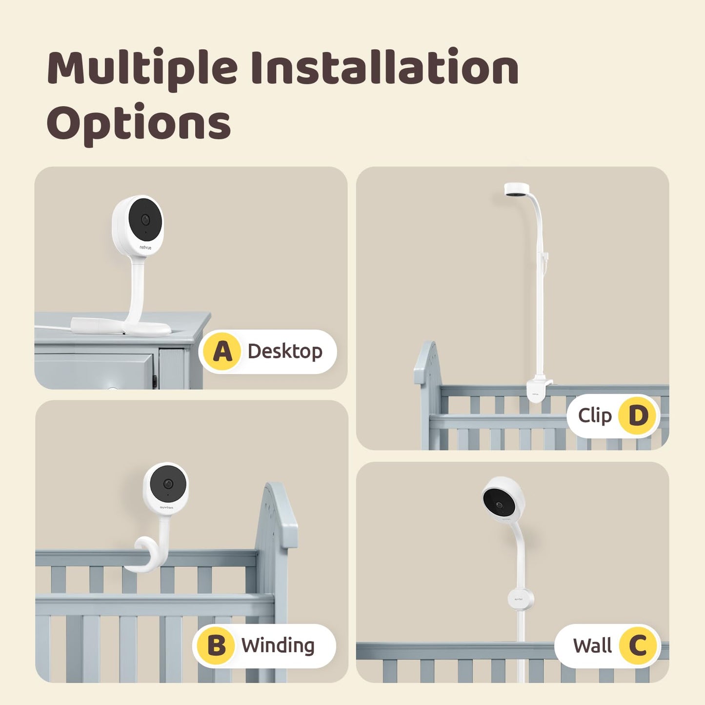 ["View and share live videos】Netvue Peekababy is a smart baby monitor that connects the baby camera with a 5-inch LCD monitor (750 m signal) and the mobile Netvue app via 2.4G WiFi, allowing you to quickly control your baby wherever you are. You can also invite your family to view it. The baby monitor securely and encrypted data only to those you choose to know that your child is safe.","【Everything you need to see】The baby camera with Full HD 1080P resolution, 115° wide angle, and 4x digital zoom, captures animated images at night through the night vision function, even in low light conditions. You can even see your baby's tiny eyelashes.","Talk to your baby: Comfort your baby with your voice. Watch, listen, and comfort your toddler at home and on the go. The video baby monitor camera with camera and two-way audio, with speaker and microphone, allows you to speak to your baby and hear their voice through the screen or mobile phone.","【Real-time notifications】Netvue baby monitoring cameras with motion detection and crying The baby camera immediately alerts you when your baby starts to cry or move. You can receive notifications on the screen or on your mobile phone. Know the status of your baby, no matter where they are or what they are doing.","【Install it anywhere】You can place the baby monitoring camera on the table, on the wall, above the crib, or attach it to the bed rails. The set comes with a mounting bracket, wall anchors, and screws. Netvue Peekababy also includes more features. Such as meal reminder, temperature and humidity display, playing lullabies, reminding diaper changes, etc."]