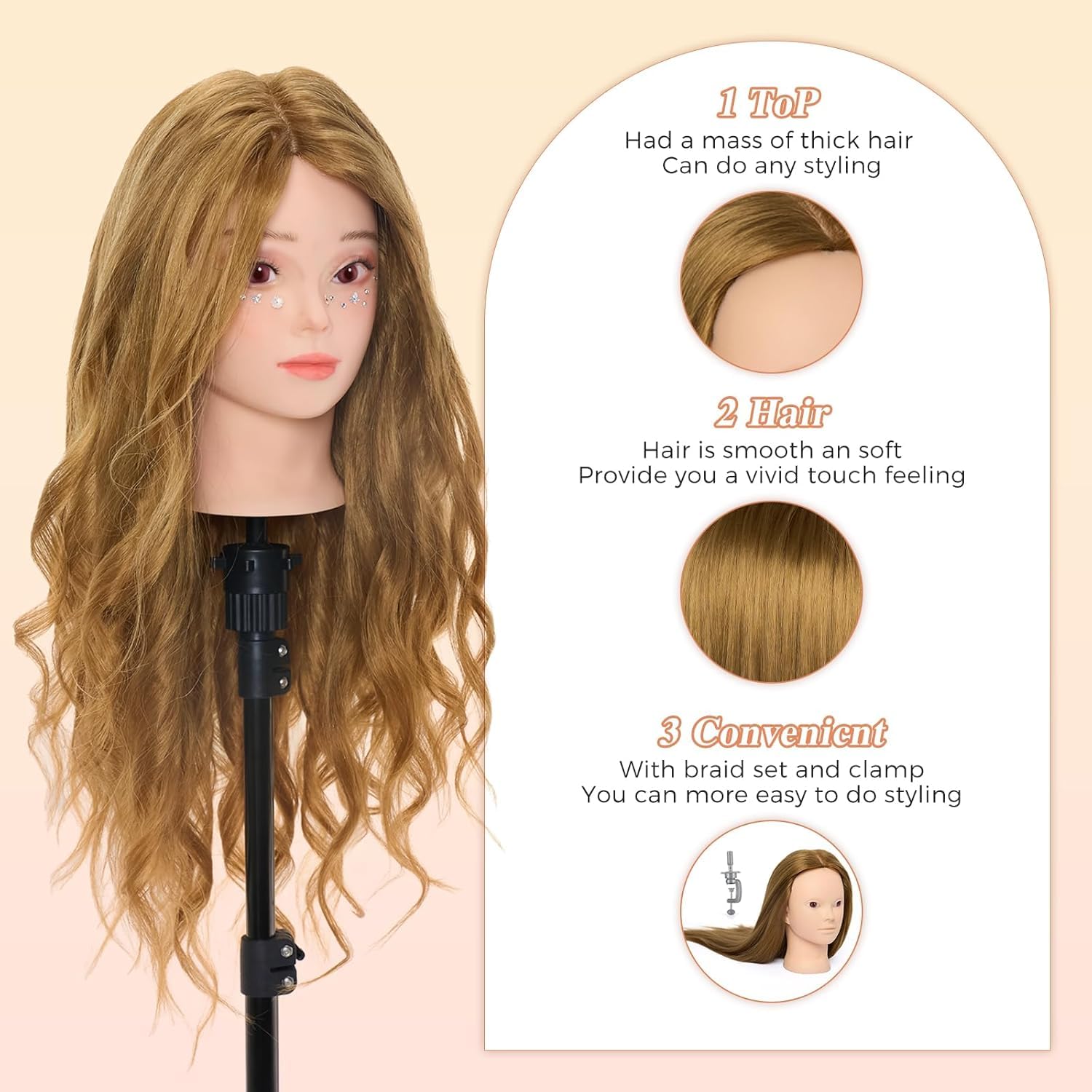 "【Multifunctional】Perfect for cosmetology students or anyone who wants to practice straightening, curling, cutting, braiding, pinning, etc. It can also be a teaching aid for ladies or young girls to make hairstyles at home.",
