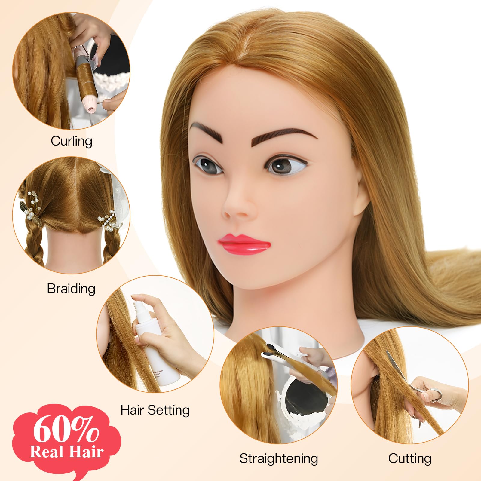 "Material for the mannequin head: 80% real hair, extra long hair, easy to comb, no tangling.",