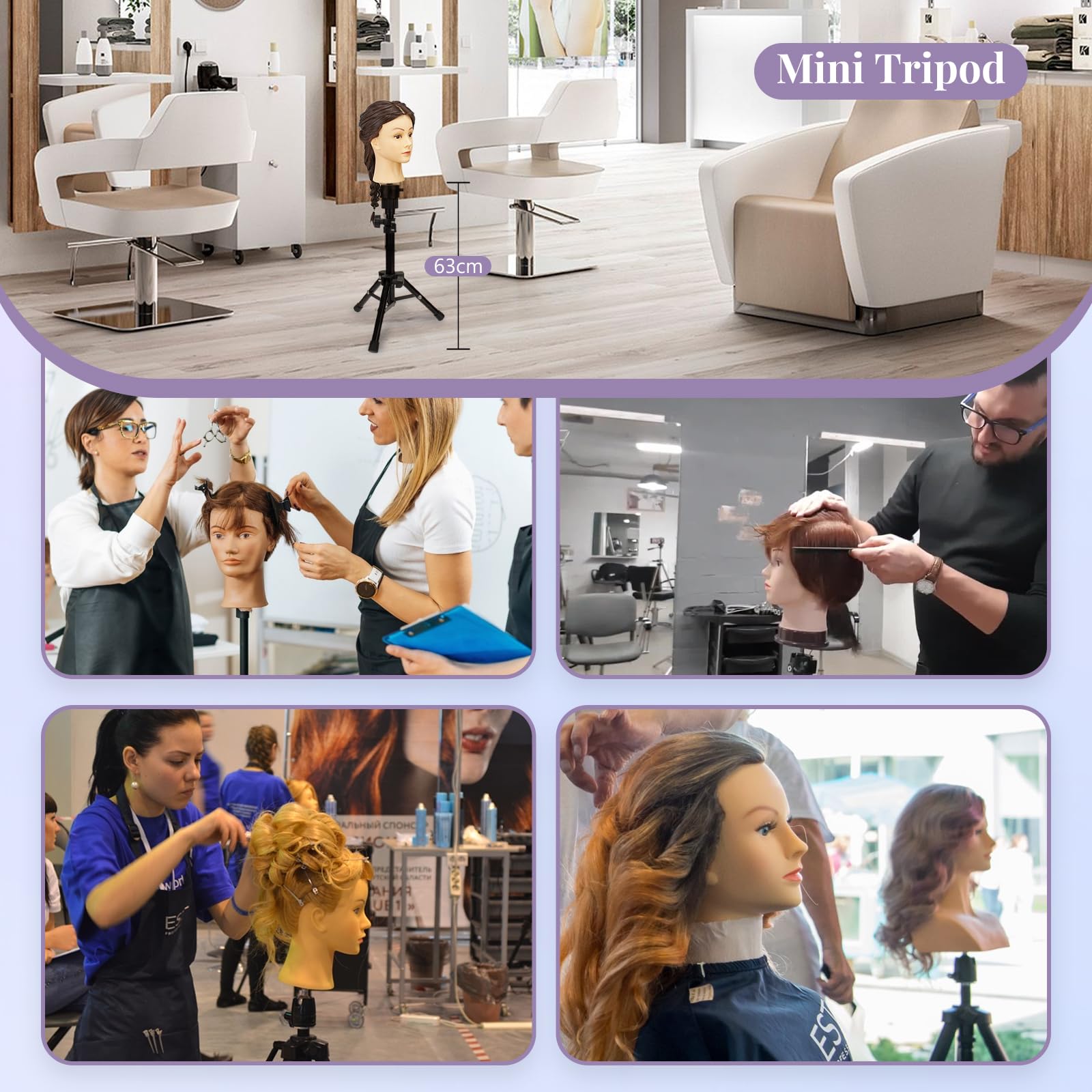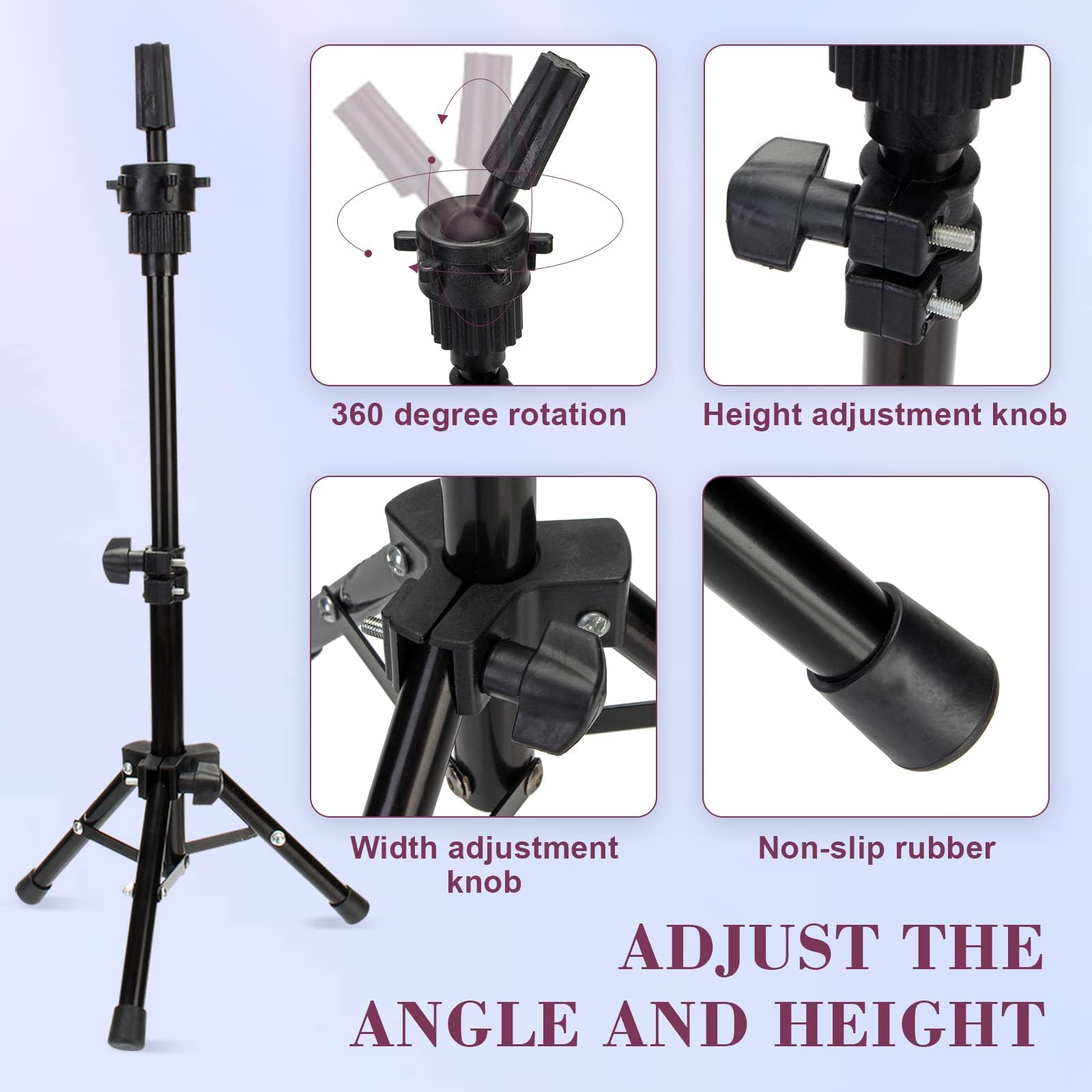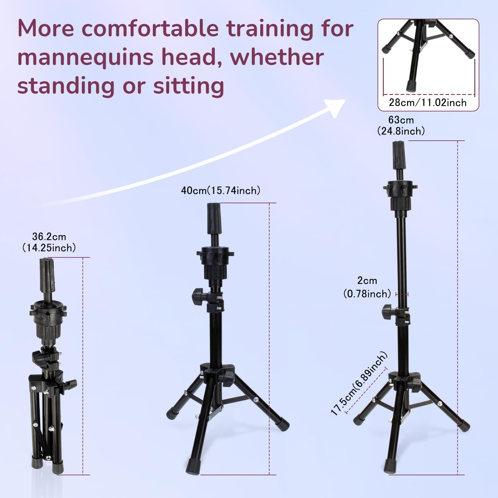 ["Adjustable height: 14.2-21.6 inches; Color: Black","Suitable for cosmetology students or anyone practicing cutting, braiding, styling.","The best convenient way to practice hair. Secure training head mannequin in place.","Very strong and durable tripod stabilizer provided to enhance the stability of the tripod. Ideally for use with Hair Tools training heads.","New and high quality, beautiful and comfortable, ideal for students, hairdressers, salons, home users etc."]