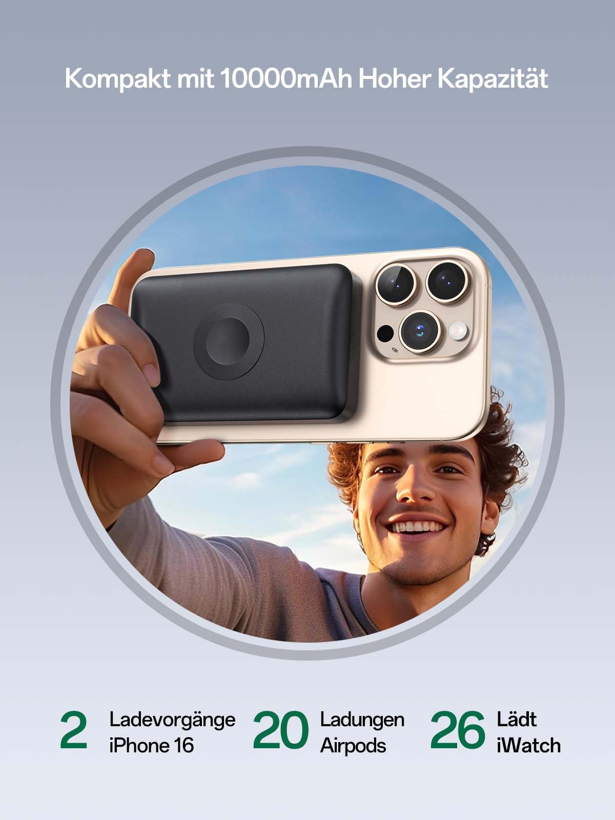 ["Magnetic charger for Apple Watch and iPhone】NEWDERY 10000mAh magnetic power bank for Apple Watch with built-in magnetic modules, Type C port and Type A port. One side of the charging station can automatically align to charge your iPhone without pressing the power button, while the other side can wirelessly charge your Apple Watch. Press the button once to start charging and double-click to stop charging.","20W Fast Charging Station】Power bank for iPhone is compatible with iPhone 16/15/14/13/12/Pro Max/Pro/Plus/Mini; power bank for iWatch is compatible with Apple Watch Series 9/8/7/6/5/4/3/2/1/SE/Ultra. The USB-C port supports PD 20W fast charging for other devices and 18W max input to charge the power bank. The output for the USB-A port is 5V/3A 9V/2A 12V/1.5A. Conveniently charge your 4 devices at the same time.","Powerful 10000mAh Power Bank】The wireless power bank with 10000mAh high capacity can charge your Apple Watch approximately 15 times, your iPhone approximately 1.8 times, your iPad approximately 1 time, your S23 approximately 1.6 times, and your AirPods approximately 15 times. This portable power bank provides enough energy for your devices all day long, perfect for travel.","Safe and practical】Newdery portable charger power bank for Apple Watch & iPhone is made of high-quality material and an intelligent chip that provides overcurrent protection, overvoltage protection, and short circuit protection. It offers a safe and reliable charging environment for your smart devices.","What you get】1*Power bank charger, 1*USB C to USB C charging cable, 1*User manual, friendly customer service. 12-month warranty and lifelong technical support. If you have any questions about the magnetic power bank, please feel free to contact us."]