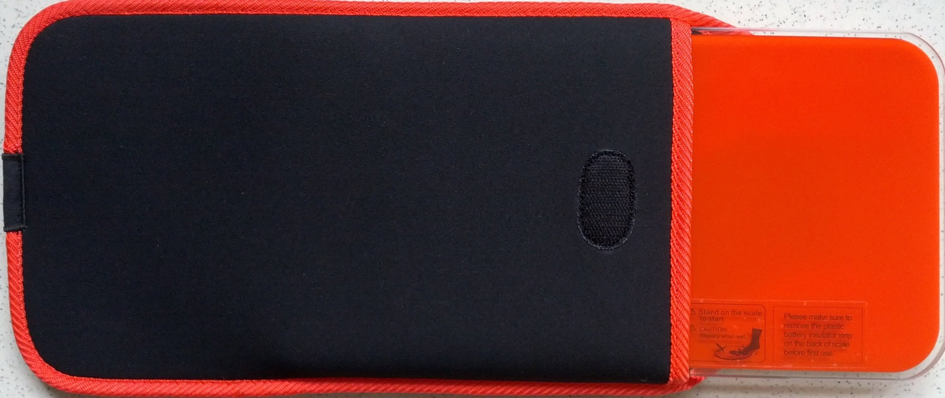 ["This mini scale also comes with an elegant case for travel protection, black with red edges matching the red color of the scale.","Capacity: 400 lbs / 180 kg, measuring in increments of 0.2 lbs. *** Scale for precise weight measurement - will not work directly on a carpet or rug.","Step on technology, no more tapping to switch on scale. Step on and get instant measurements!","Mini scale measures 12\" x 6.5\" x 0.25\", case dimensions: 13.25\" l x 7.5\" x 0.3\" w; foldable cover with nylon velcro to easily keep the scale in the case","Anti-slip feet won't scratch floors. Scale must be placed on flat, level, and hard surface for accurate weight. If battery cover comes off, make sure battery is still in place and tight. Loose battery can cause inaccurate weighing."]