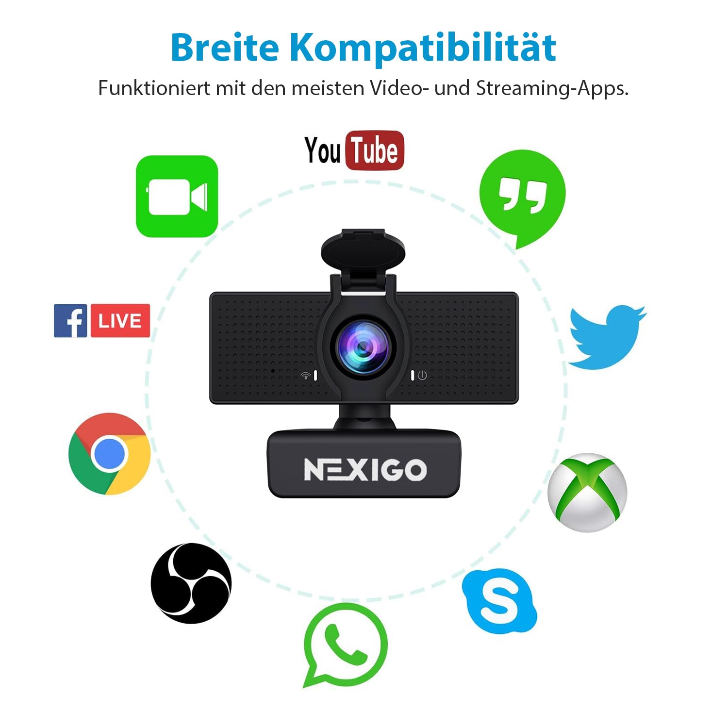 NexiGo N60 1080P Webcam, HD webcam with microphone, software control, and privacy cover. USB computer camera, 110° field of view, plug-and-play for Zoom/Skype/Teams, conference calls, and video calls.