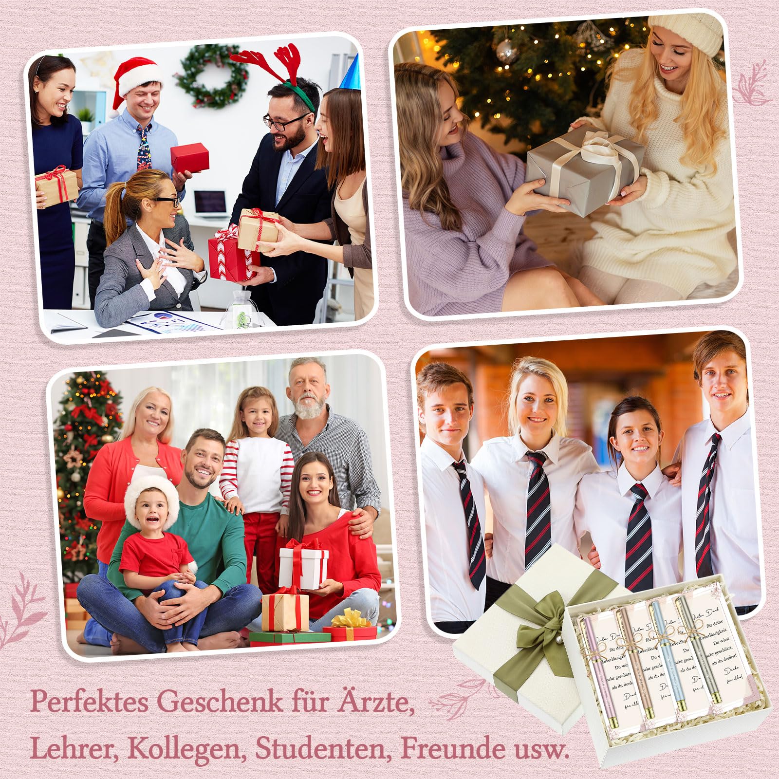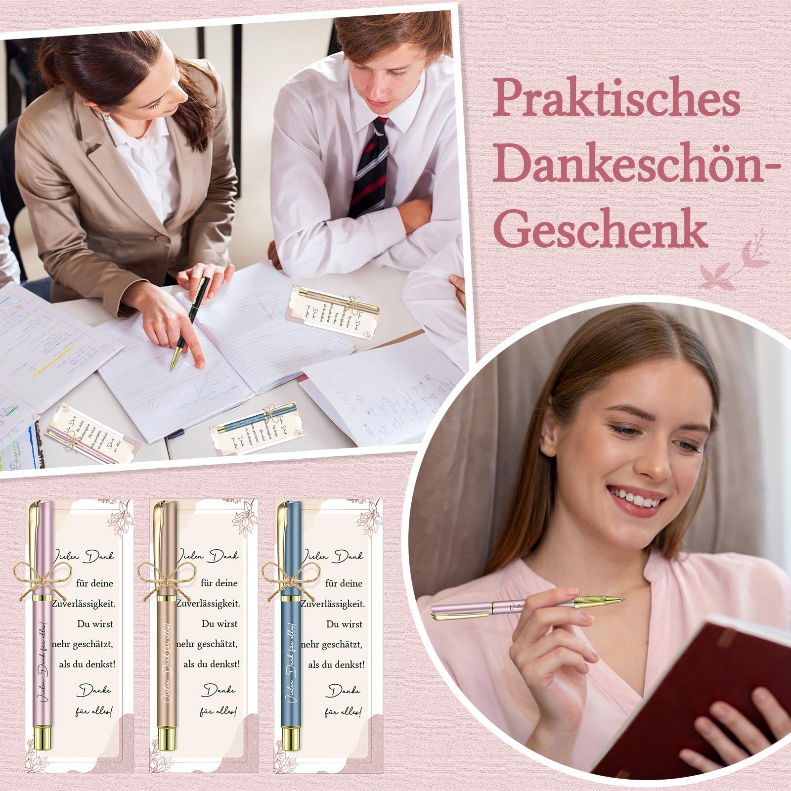 ["Product set: Each package includes 18 beautifully designed motivation pens for colleagues, as well as 18 thank you cards (with 'Thank you for everything' on the cards) and 1 roll of twine in sufficient quantity to meet the needs of large events","UNIQUE DESIGN: Each inspirational pen features a unique, sophisticated design that makes it more than just a writing tool, but a positive medium; Combine these items with a heartfelt thank you card, these are small gifts for colleagues","Right size: Comfortable to hold and write, each inspirational fun pen measures approximately 13.6 x 1.1 cm (5.35 x 0.43 inches); The thank you card measures approx. 15 x 6 cm (5.91 x 2.36 inches); Ideal for writing down personal gratitude; Available as gratitude is gifts of appreciation for colleagues","High-quality material: The employee thank you pen for team gift is made of high-quality plastic and metal to ensure durability and a smooth writing experience; The thank you card is made of sturdy cardboard that feels pleasant to the touch and is suitable for writing immediate emotions","Versatile application: You can send inspirational office pens and cards to your team, employees, colleagues, partners, and team members to express your care for your team members; These inspirational words will inspire and encourage them to face difficulties courageously and be more motivated to work; This Christmas gift for colleagues can be used"]