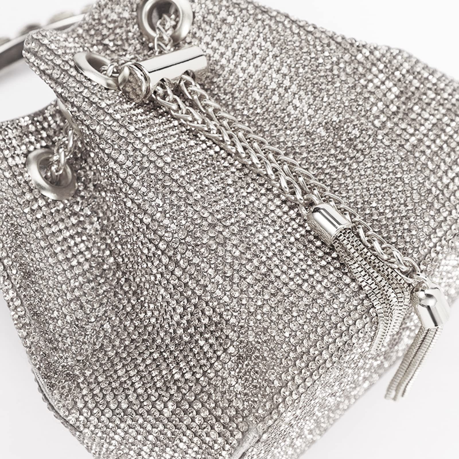 NICOLE & DORIS Women's Bag Rhinestone Elegant Handbag Clutch Glitter Evening Bag Bucket Bag Purse Rhinestones Shoulder Bag for Wedding Party Leisure Silver
