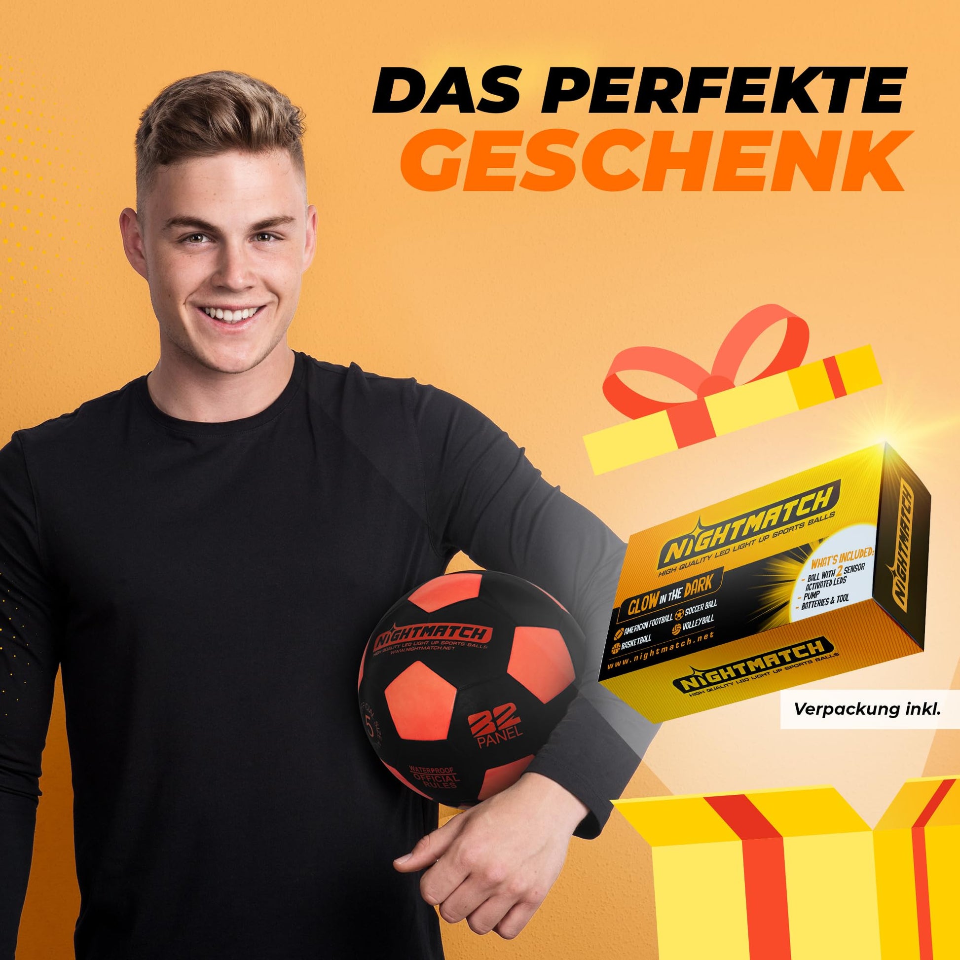 "ENHANCE THE GAME: Experience the excitement of playing soccer at night with our waterproof LED light up soccer ball Nightmatch. This beach soccer ball is easy to assemble and play in the dark, guaranteeing numerous fun and entertaining moments in the dark!",