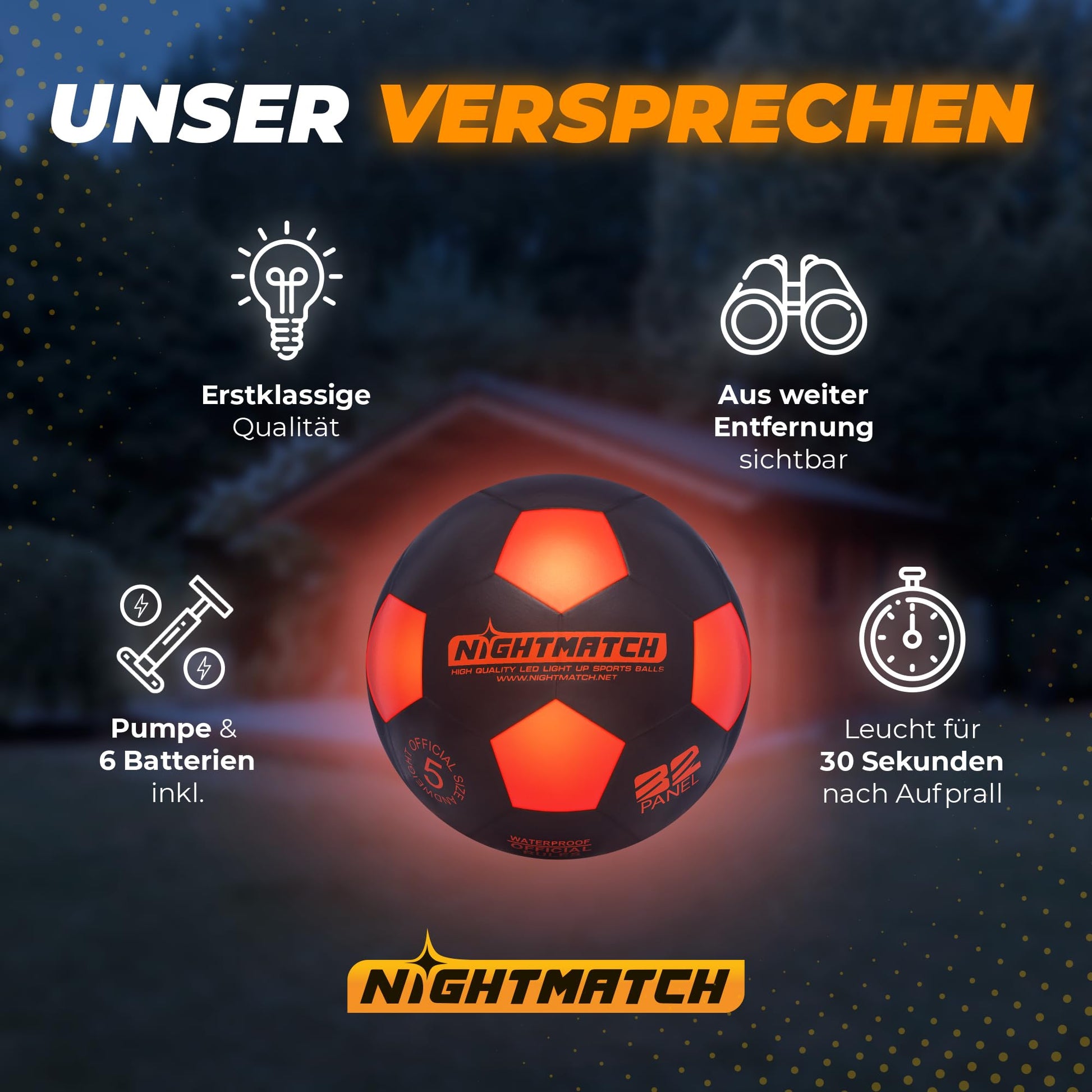 NightMatch LED Light-Up Soccer Ball | Official Size 5 | Waterproof | Glows in the Dark | Soccer Ball for Kids & Adults | Light-Up Soccer Ball | For Indoor & Outdoor Use