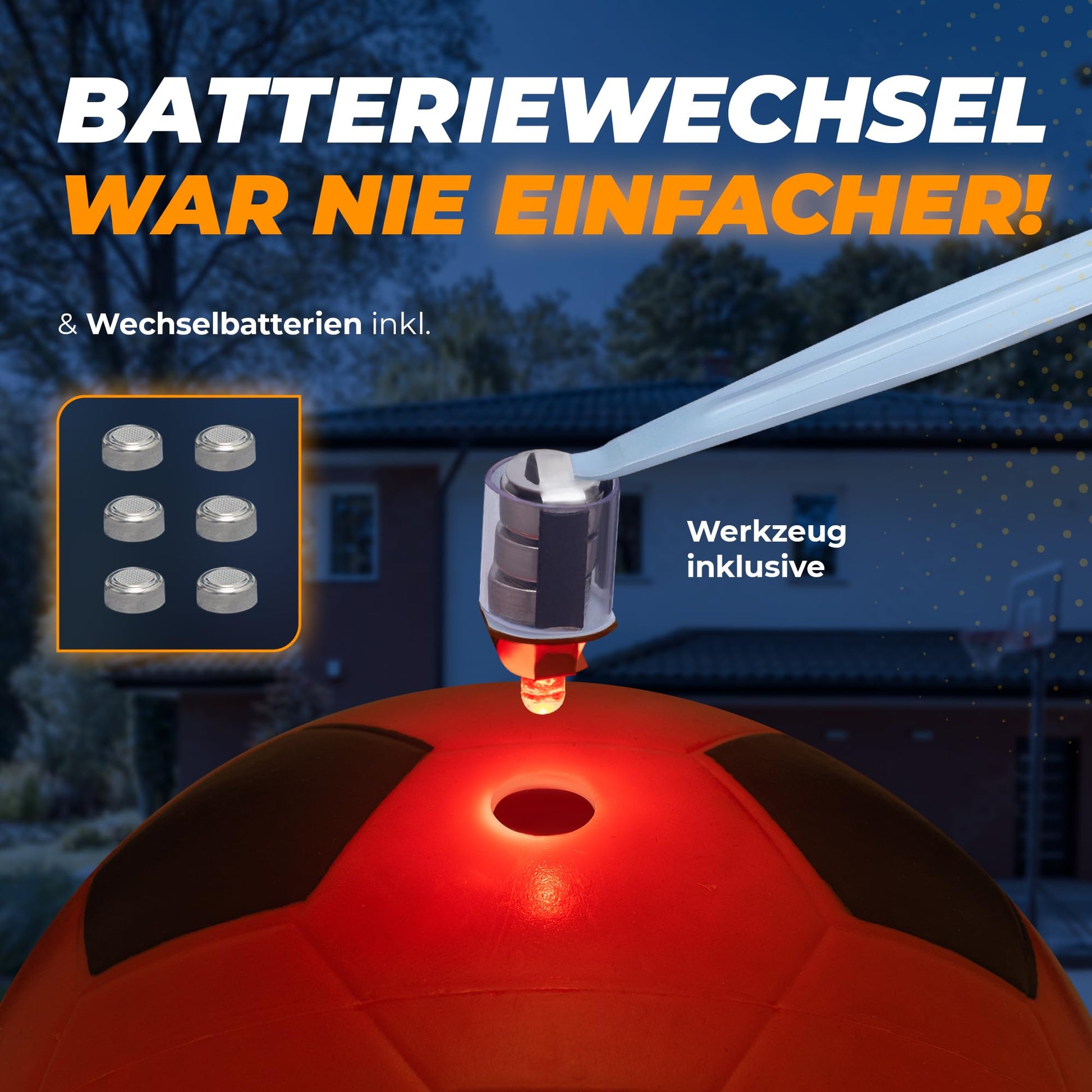 "ALL-INCLUSIVE KIT: Our soccer ball Nightmatch kit includes everything you need for endless night fun, including a pump, six spare batteries with pull tab tool, two pre-assembled LEDs, and a video setup guide. The high-quality batteries light up for up to 30 hours, ensuring long-lasting enjoyment."