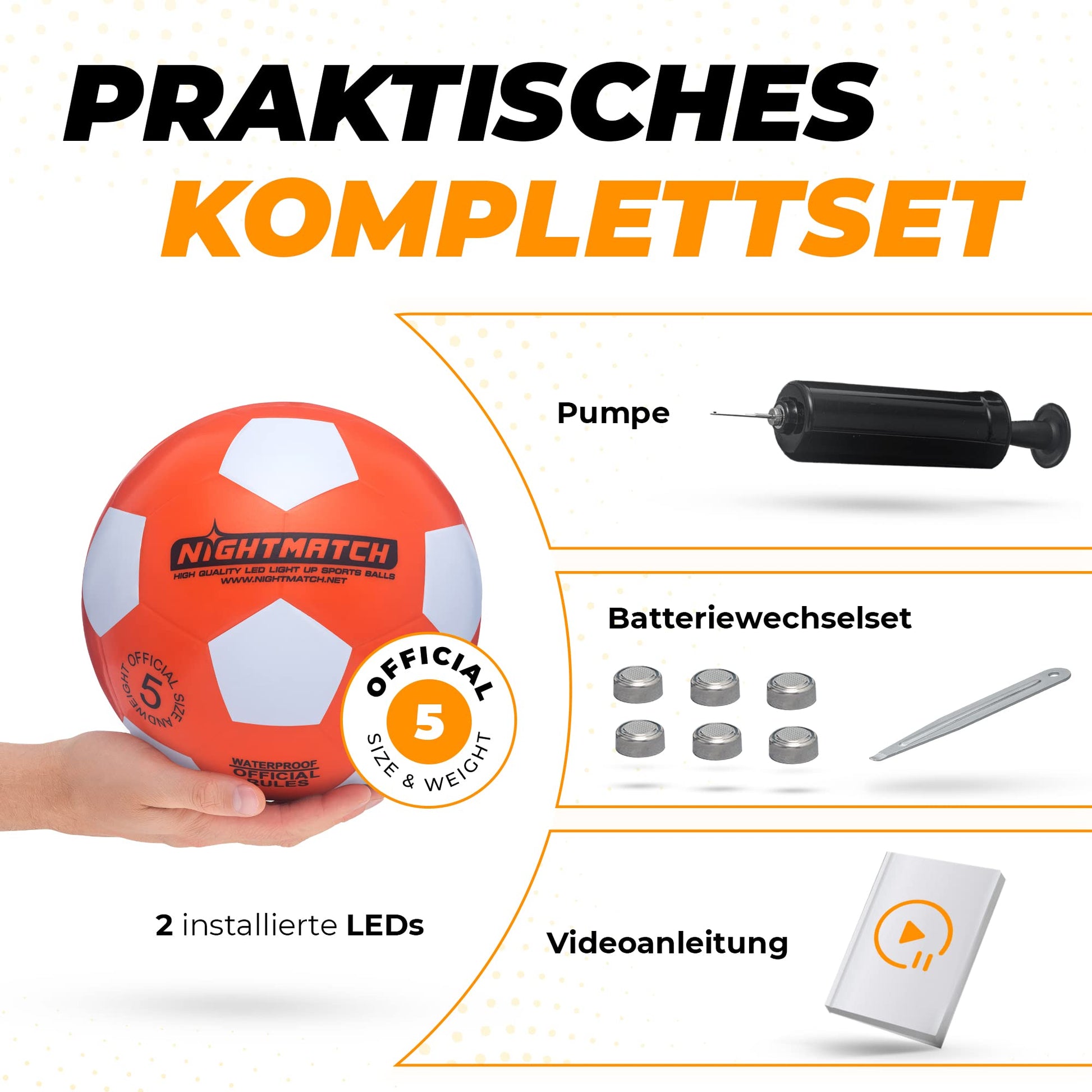 "LIGHT UP THE GAME: Experience the excitement of night soccer with our waterproof LED light-up soccer ball Nightmatch. This beach soccer ball is easy to assemble and play in the dark, guaranteeing plenty of fun and entertaining moments in the dark!",